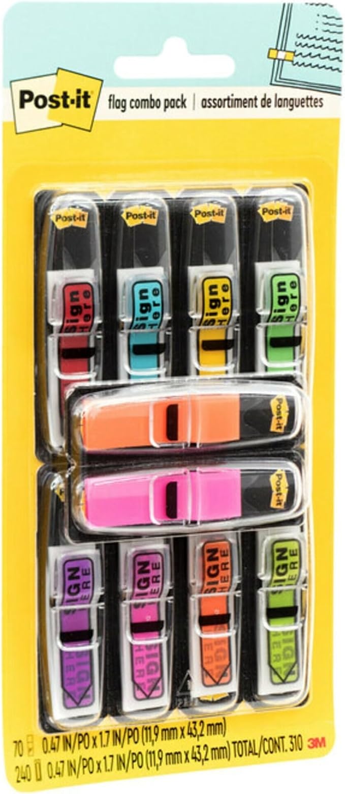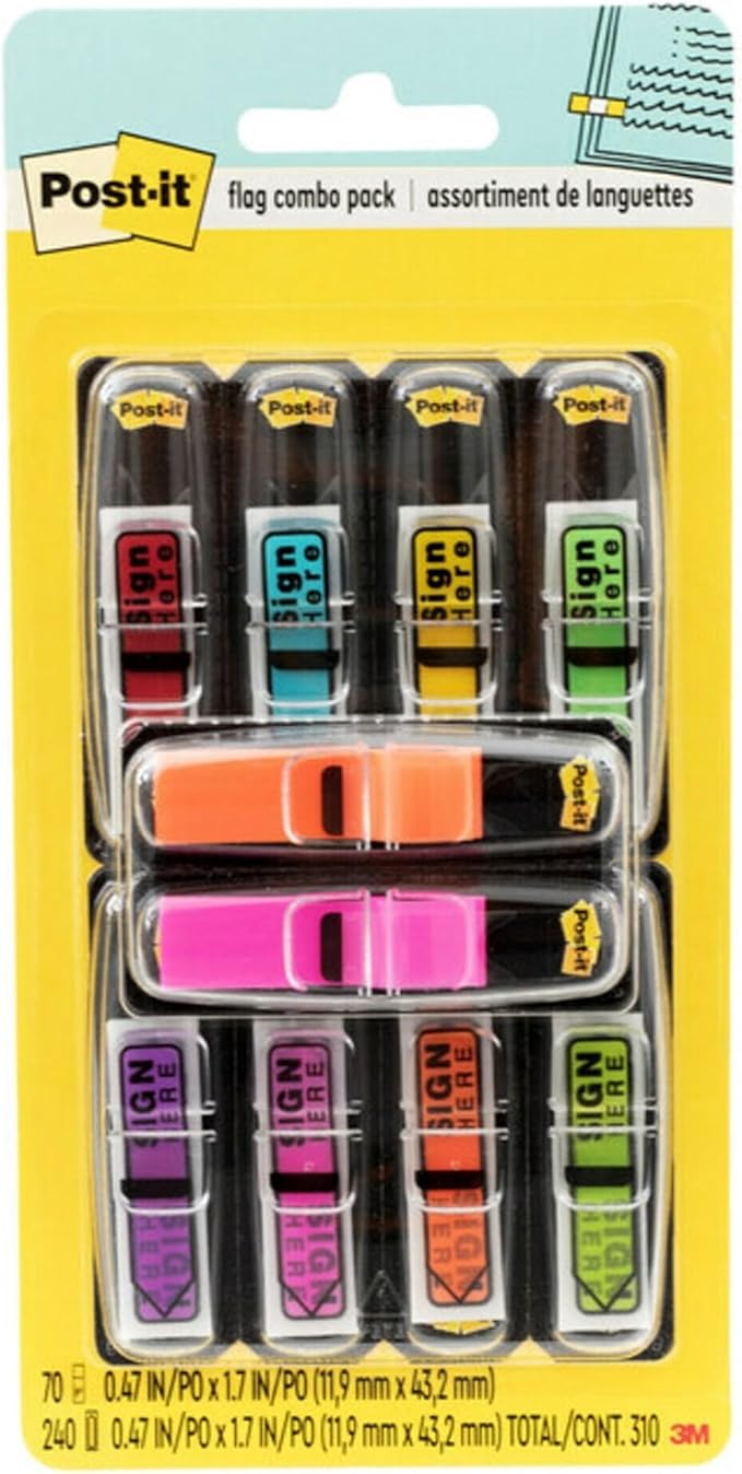 - Flags stick securely and remove cleanly without damaging the document