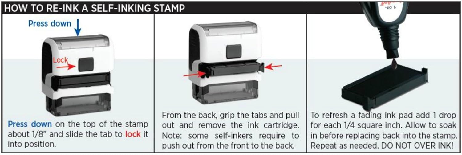 - PERSONALIZE - Enter up to five lines of text on this customizable self-inking stamp. Choose from 16 ink colors!