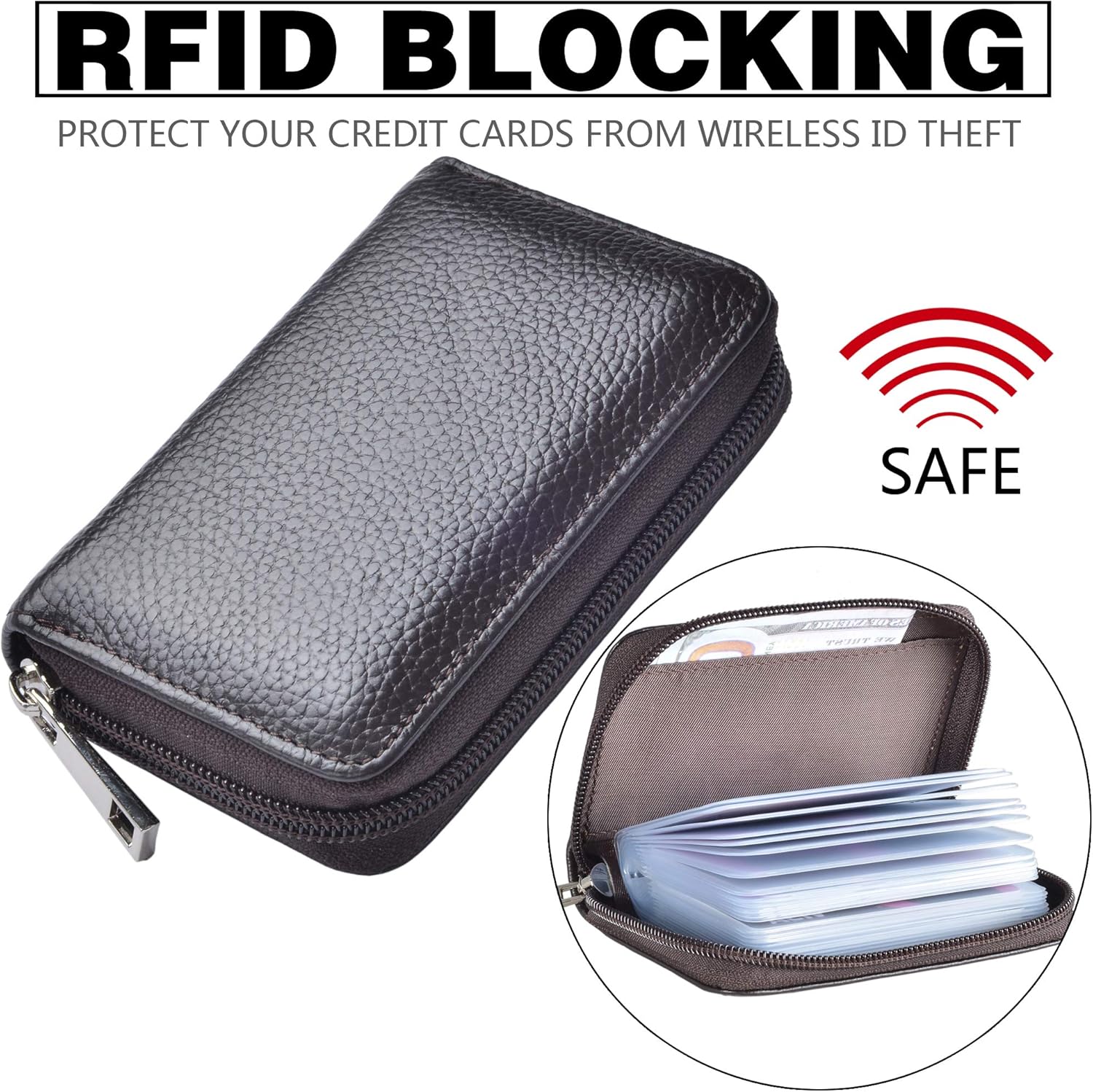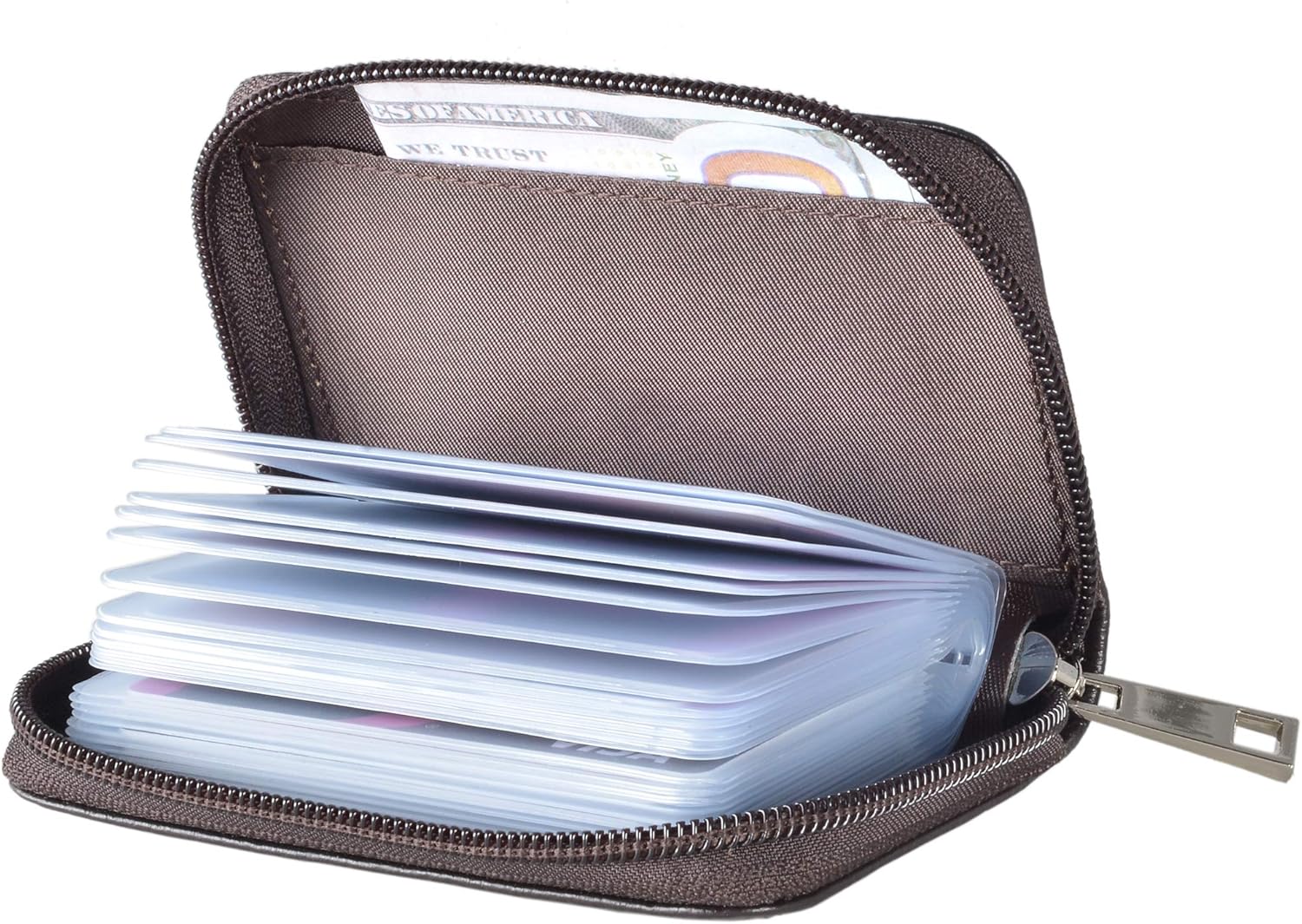 Easyoulife Genuine Leather Credit Card Holder Zipper Wallet With 26 Card Slots