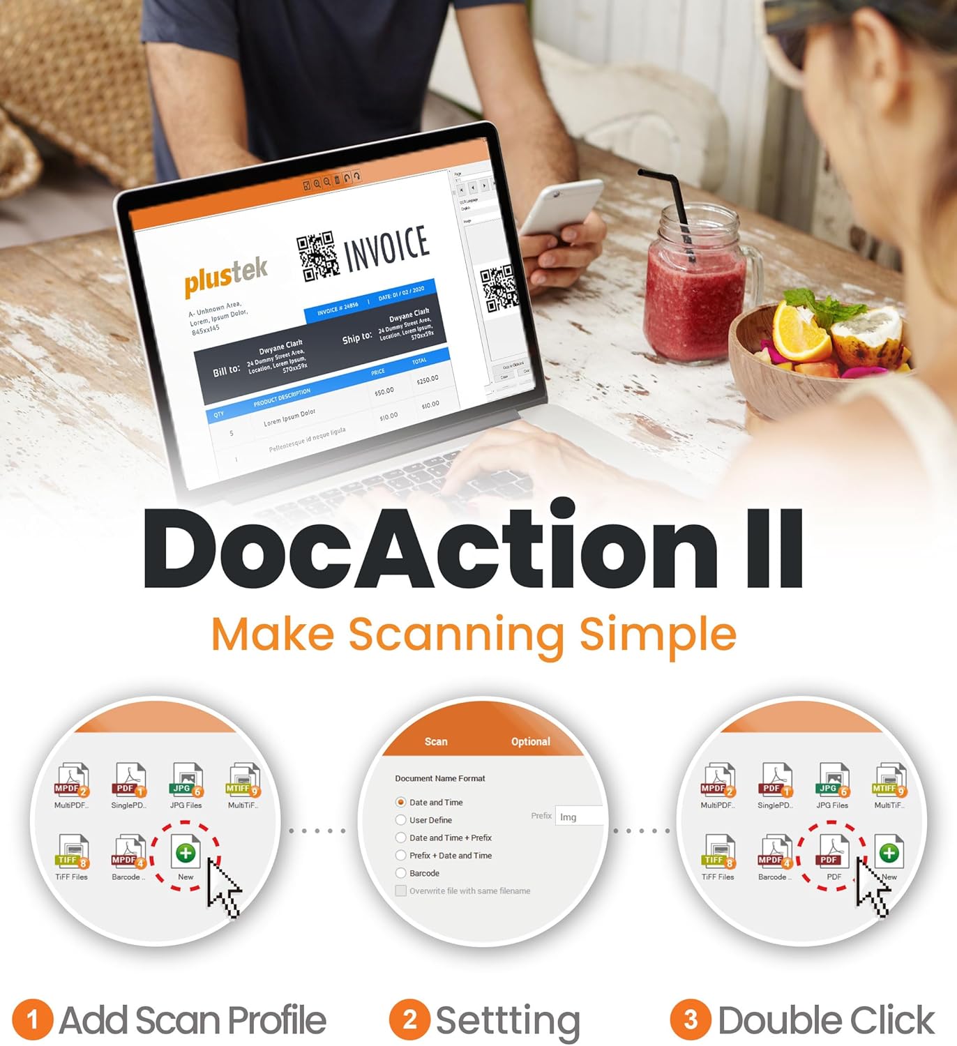 - Multiple Scan Destinations - DocAction II supports up to 255 customizable scan profiles. Each profile represents individual scan settings including file size, scan resolution, format and saving folder. Once the profile is set, you can scan with a push of a button to finish all the work.