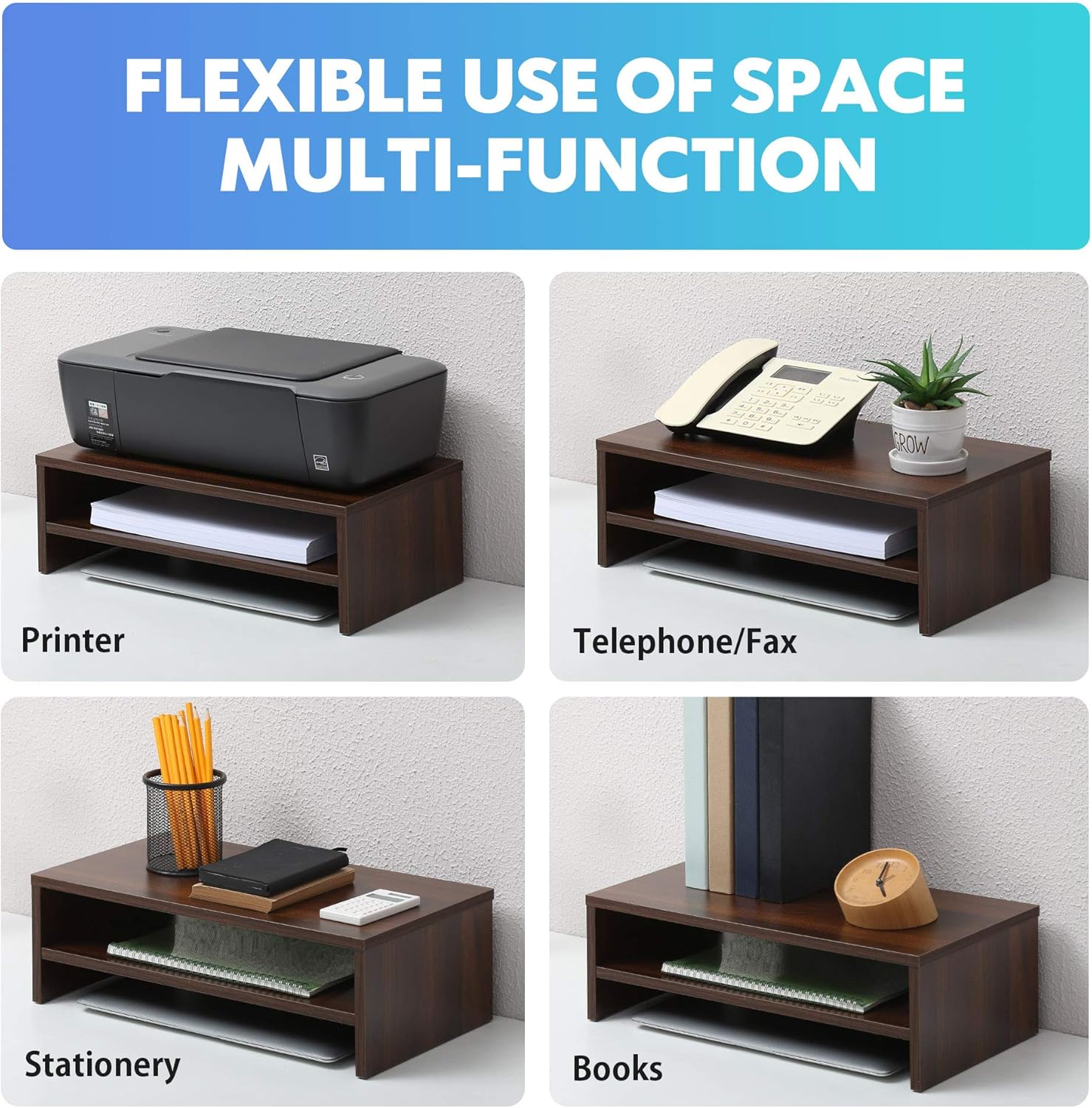 FITUEYES Monitor Stand - 2 Tier Computer Monitor Riser Shelf, Wood Desktop Stand for Laptop Computer Screen, Desk Organization, Office Supplies