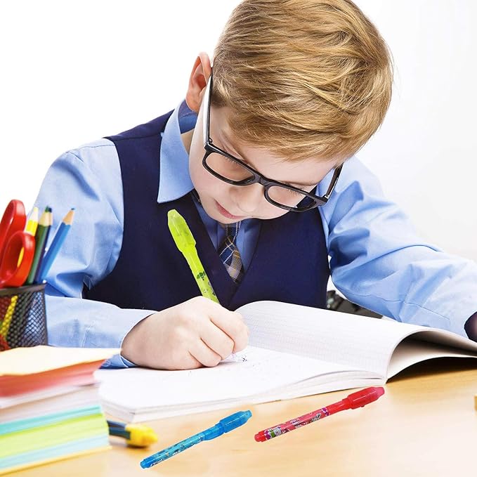 - ✔Great Gift For Girls Boys Fun Party Favors:This Spy pen comes in a pack of 24; Assorted colors to make the activity like Wedding RSVPs,Black Light Party more exciting and fun; Parents could buy it for their kid’s party at home; These would be a treat for kids who like secret spy games, crime-solving or super-hero games, for those who like passing secret notes or leaving clues that only certain people can see.Teachers can buy it for students for treasure hunt, or classroom activity.