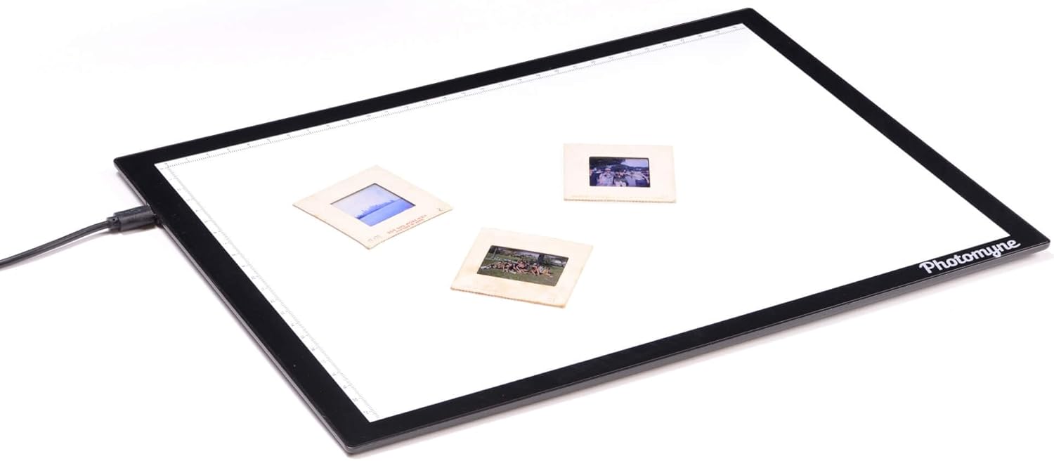 - THE PERFECT LIGHT BOX FOR SLIDES AND NEGATIVES - Convert slides and negatives to digital images. Best used together with the SlideScan (for scanning slides) or the FilmBox app (for scanning film negatives) by Photomyne. light tracing board