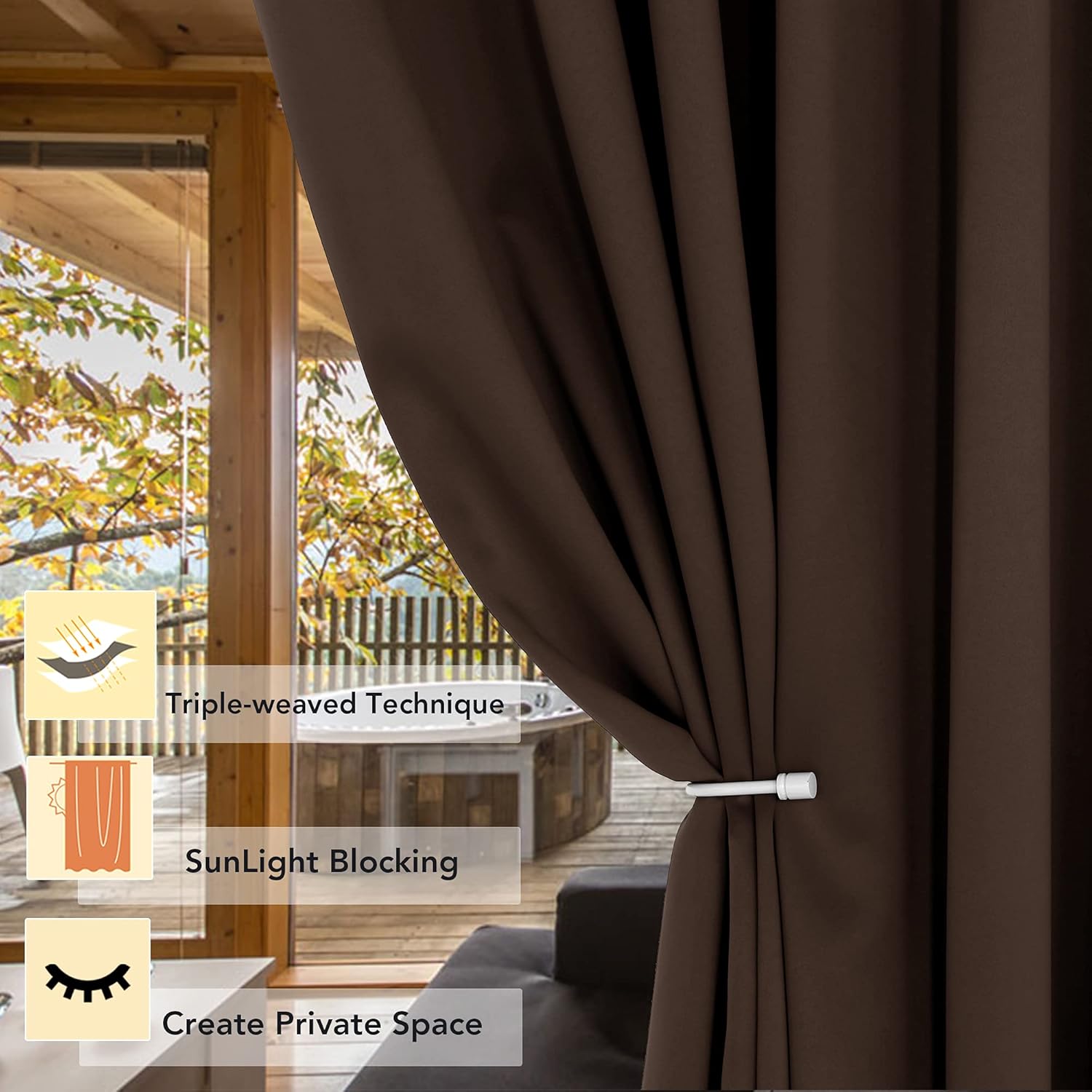 - PREMIUM BLACKOUT MATERIAL: Our room darkening curtain is made of 100% polyester fabric and have the same color with the front and back. Crafted in a certified STANDARD 100 by OEKO‑TEX factory from a durable soft and thick triple weave blackout fabric which block out 90% above sunlight and UV rays. Darker colors work better.