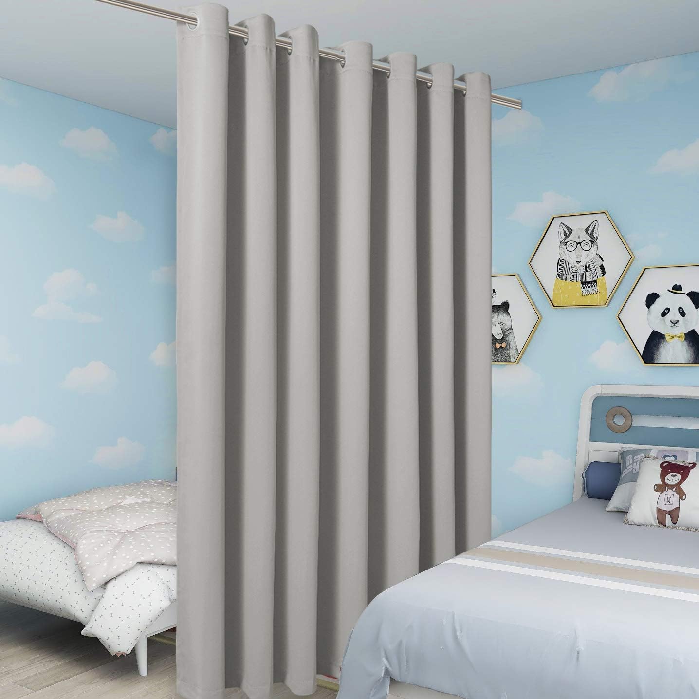 BONZER Room Divider Curtain Total Privacy Wall Extra Wide Grommet Room Darkening Curtains for Patio Sliding Glass Door, 108L x 108W Inch (9L x 9W ft), 1 Panel, Silver