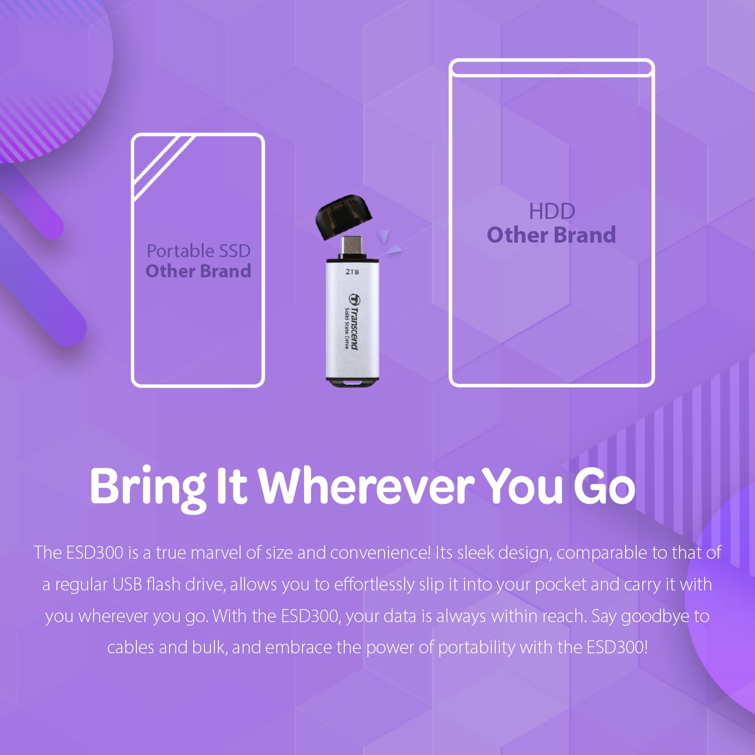- High Capacity Options: Offering storage capacities of up to 2TB, the ESD300 provides ample space for important presentations, 4K videos, music files, and high-resolution photos.