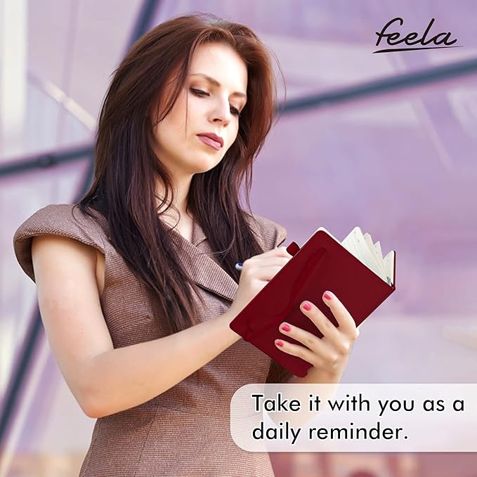 - Feela 5 Pack Classic Ruled Notebooks contains 5 classic wine ruled sturdy cover notebooks and 5 Black Retractable Pens. Each of the notebooks measures 8.3” x 5.1”, which is perfect to carry and easily held by young girls and boys. These black cute pens are customized to be placed in the pen holder, which is pretty convenient.