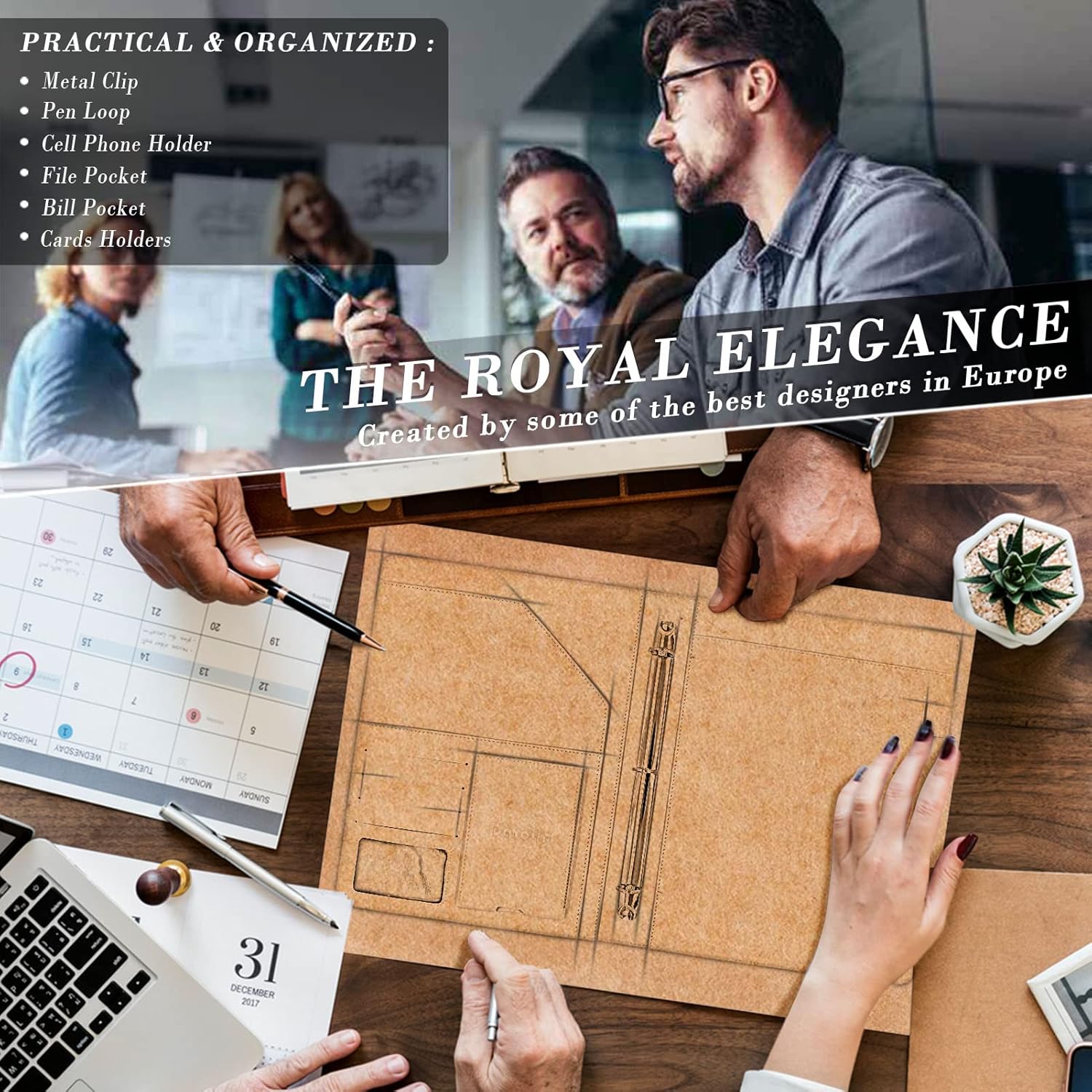 - [SLEEK & PROFESSIONAL] Make a Strong First Impression with this modern premium leather portfolio. Fits most briefcases and bags. Exquisite Design and Practical Functions make this portfolio folder holder become the Best Gift for Business Clients, Colleagues and Families.