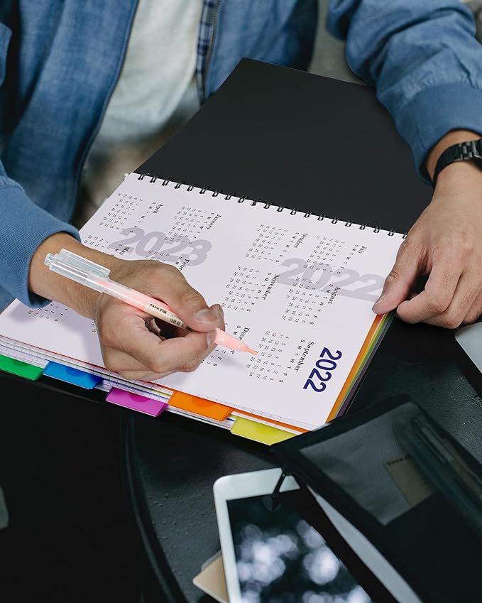 - COLLEGE RULED NOTEBOOK: Thick PP hardcover for durable & water-resistant , 100 sheets (200 Pages). Included Tabs label for marking your cover, 11'' removable ruler, calendar, velcro pocket for journaling writing work office school supplies