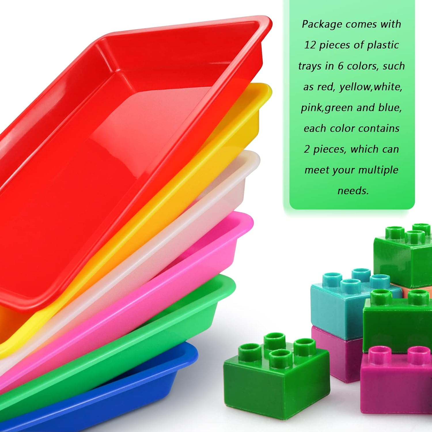 Bercoor 12 Pack Plastic Art Trays, 6 Colors Activity Crafts Tray Serving Tray Organizer Tray for Kids School Classroom DIY Projects, Painting, Jewelry, Beads, Home Organizing Supply