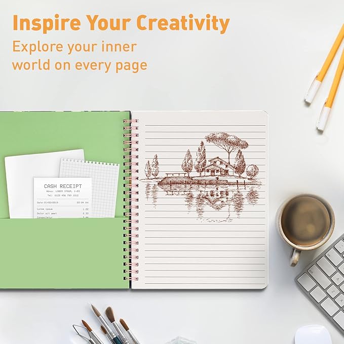 - A Pocket Always Helps — It's annoying to find important scraps of paper crumpled at the bottom of your bag. These spiral notebooks college ruled journals include a double-sided pocket page to store pens, receipts and loose papers