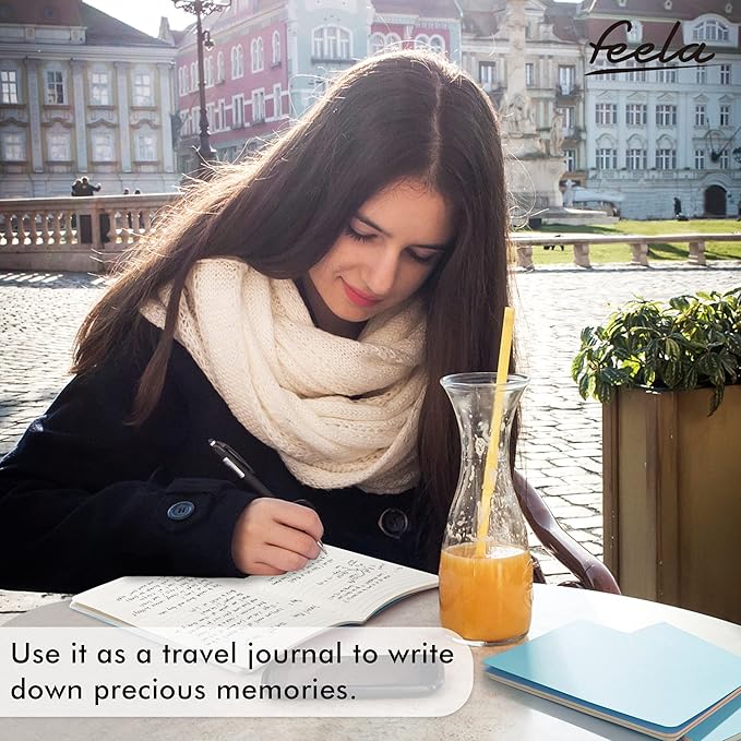 - Feela 16 Pack Soft Cover Journals include 16 light blue A5 college ruled soft cover travel journals. 250 GSM colored paper cover outside and 80 GSM smooth writing lined pages inside.