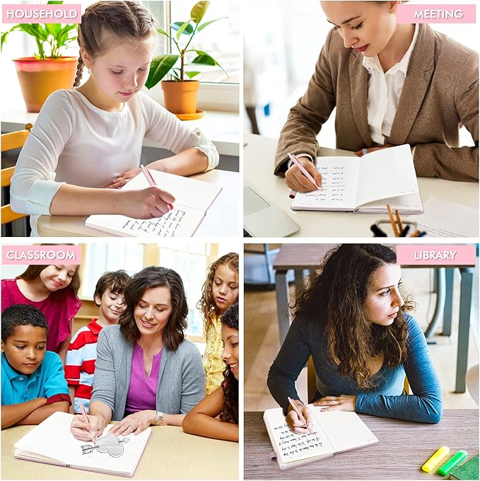 - Feela 12 Pack Classic Ruled Notebooks contains 12 rose pink ruled sturdy cover notebooks and 12 Black Retractable Pens. Each of the notebooks measures 8.3” x 5.1”, which is perfect to carry and easily held by young girls and boys. These black cute pens are customized to be placed in the pen holder, which is pretty convenient.