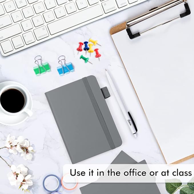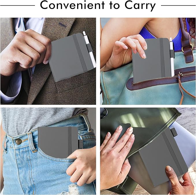 feela 15 Pack Pocket Small Notebooks Bulk, Mini Cute Notepads Hardcover College Ruled Lined Journals with Pen Holder for School Business Memos, with 15 Black Pens, 3.5”x 5.5”, A6, Gray