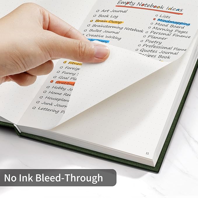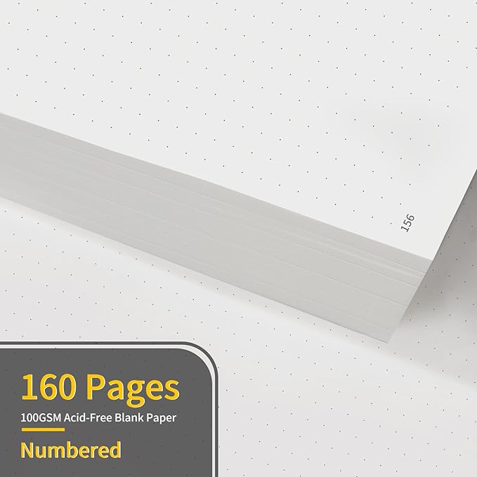 Annecy Numbered Bullet Dotted Journal Notebook, Medium 5.5x 8.25, 160 Pages 100GSM Writing Paper, A5 Deep Green Linen Cover