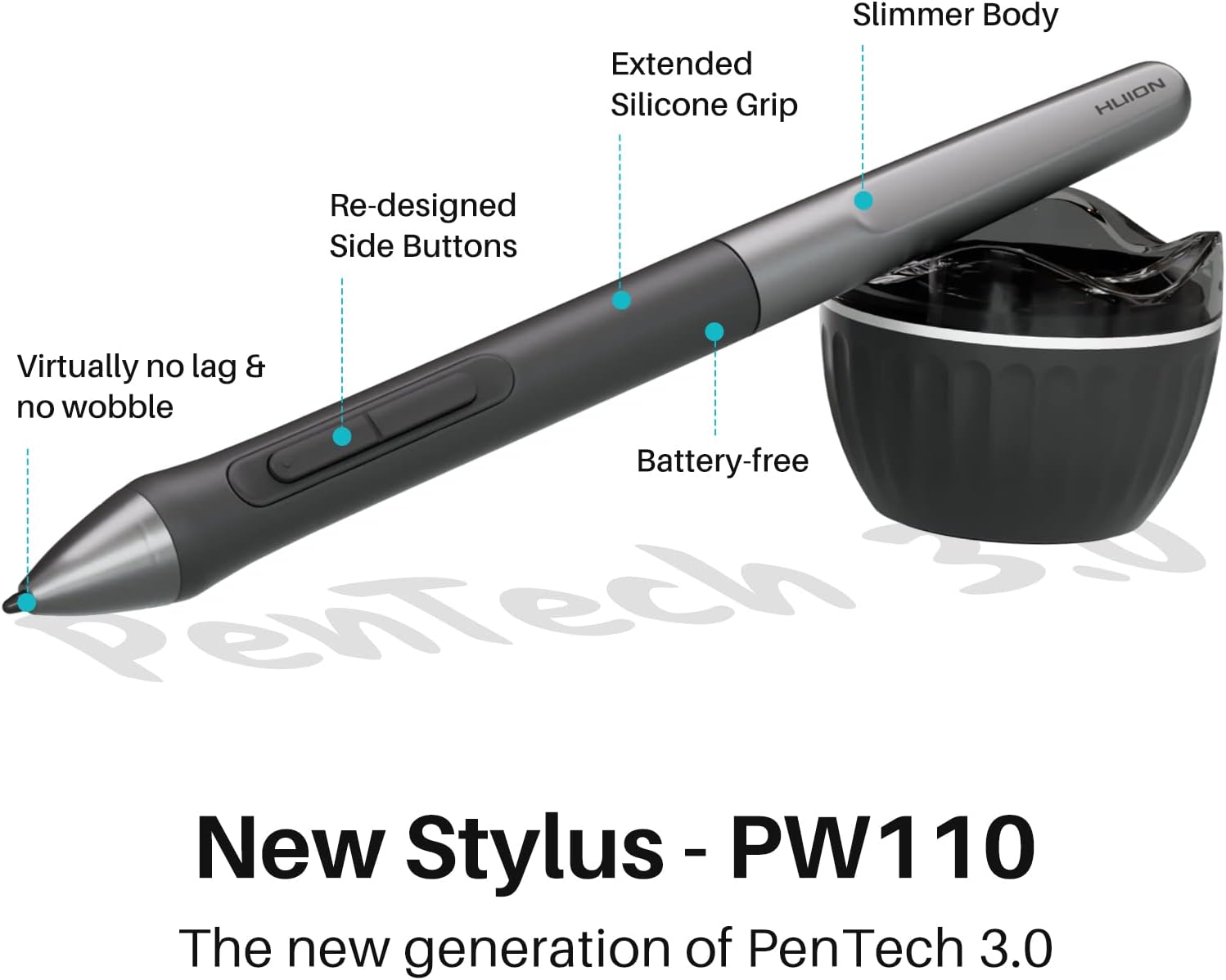- Ergonomics Pen Design: The new digital stylus PW110 is improved designed with slimmer body, soft silicone grip & accessible side buttons for better ergonomics & comfort