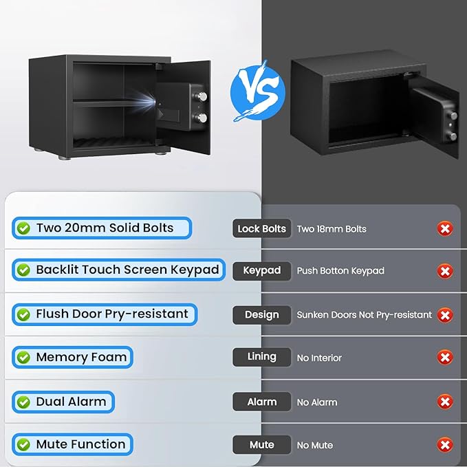 - WHAT'S INCLUDED - Your purchase of the Kavey safe includes a safe box, 2 emergency keys, 4 expansion screws, an emergency battery box, 4 non-slip foot mats, and a user manual.
