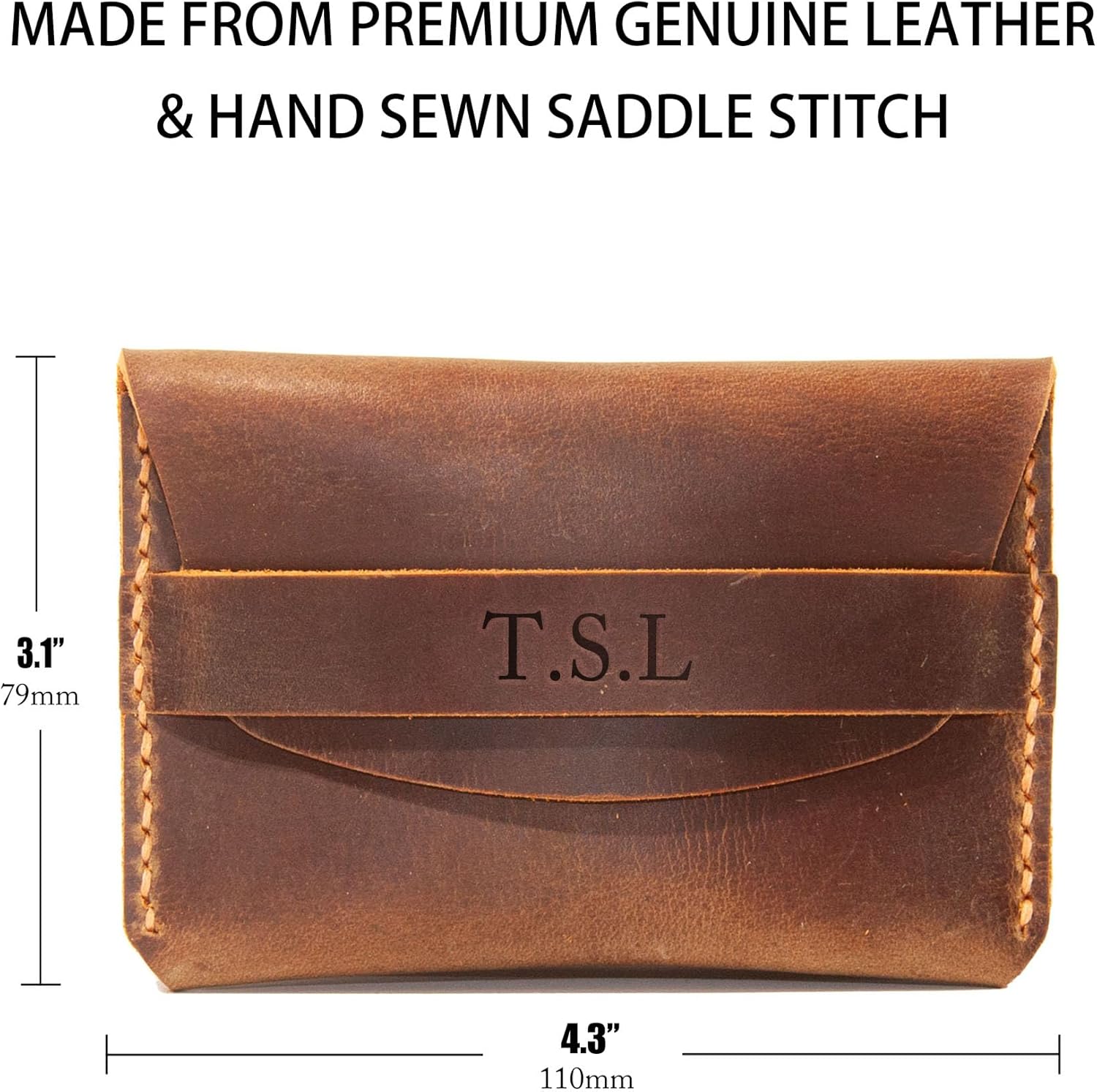 - Personalize it with your name or initials. You can add a personal touch to this wallet card holder by having your name or initials engraved on the leather. This makes it a great gift for yourself or that special someone.