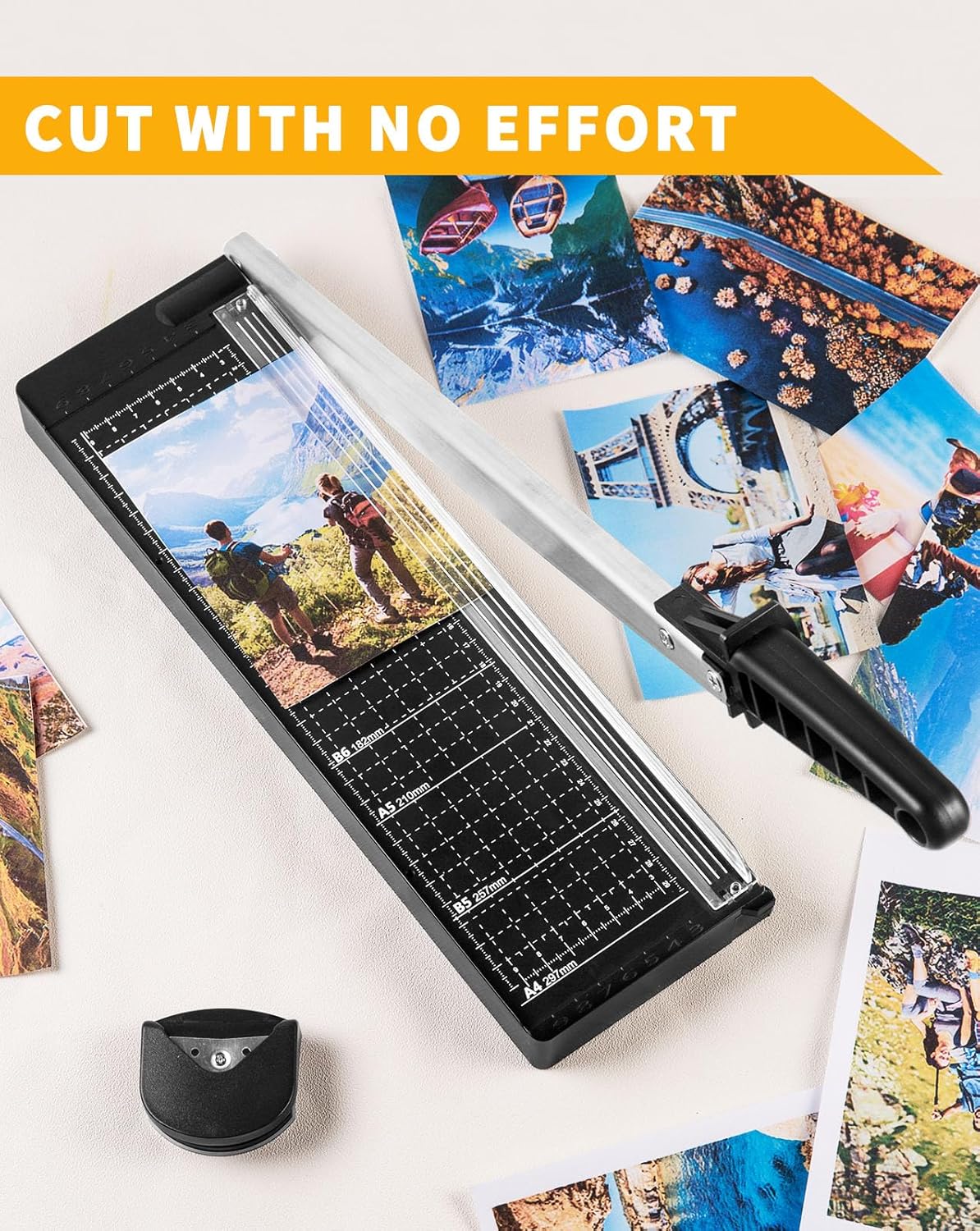 - [PORTABLE & USER-FRIENDLY] With a sturdy yet lightweight plastic base, storage and mobility are a breeze. The ergonomic handle brings comfort and enhanced grip, making paper-cutting a piece of cake. Convenience at your fingertips