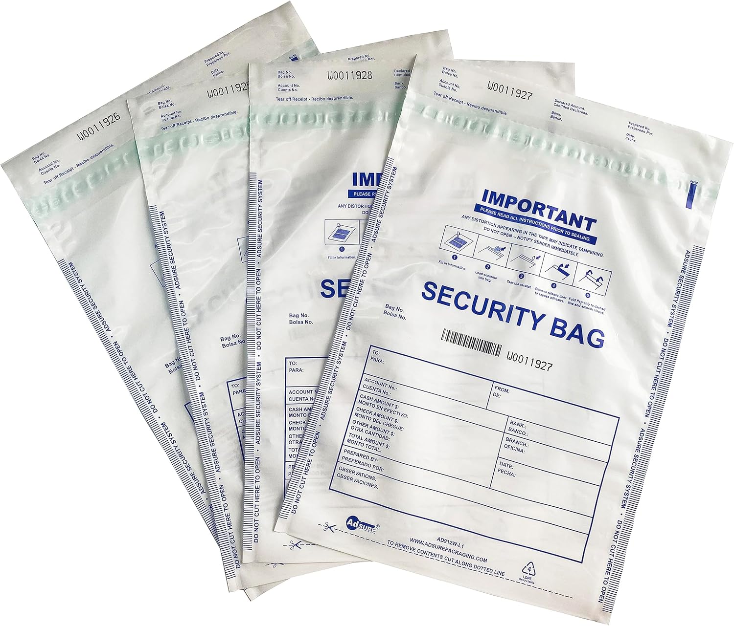 - SIZE: 9”x12” bank deposit bags, cash bags, tamper evident bag. Package of 100 bags