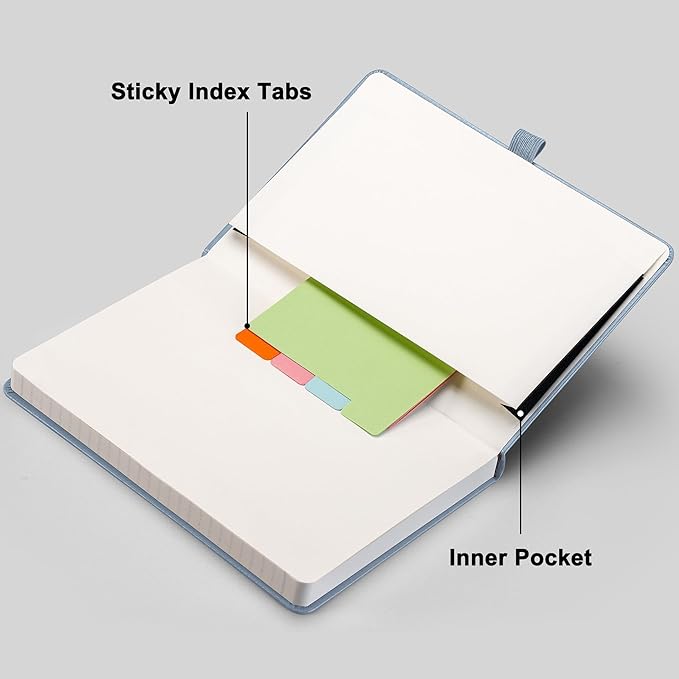 - LINED JOURNAL NOTEBOOK: RETTACY Lined Journal Notebook comes in a A5 size (5.7'' x 8.3''), 192 numbered pages, 7 mm college ruled, durable and smooth leather hardcover, 100 GSM thick acid-free paper, 180Β° lay-flat, pen holder, elastic closure band, 2 ribbon bookmarks, inner pocket & sticky notes