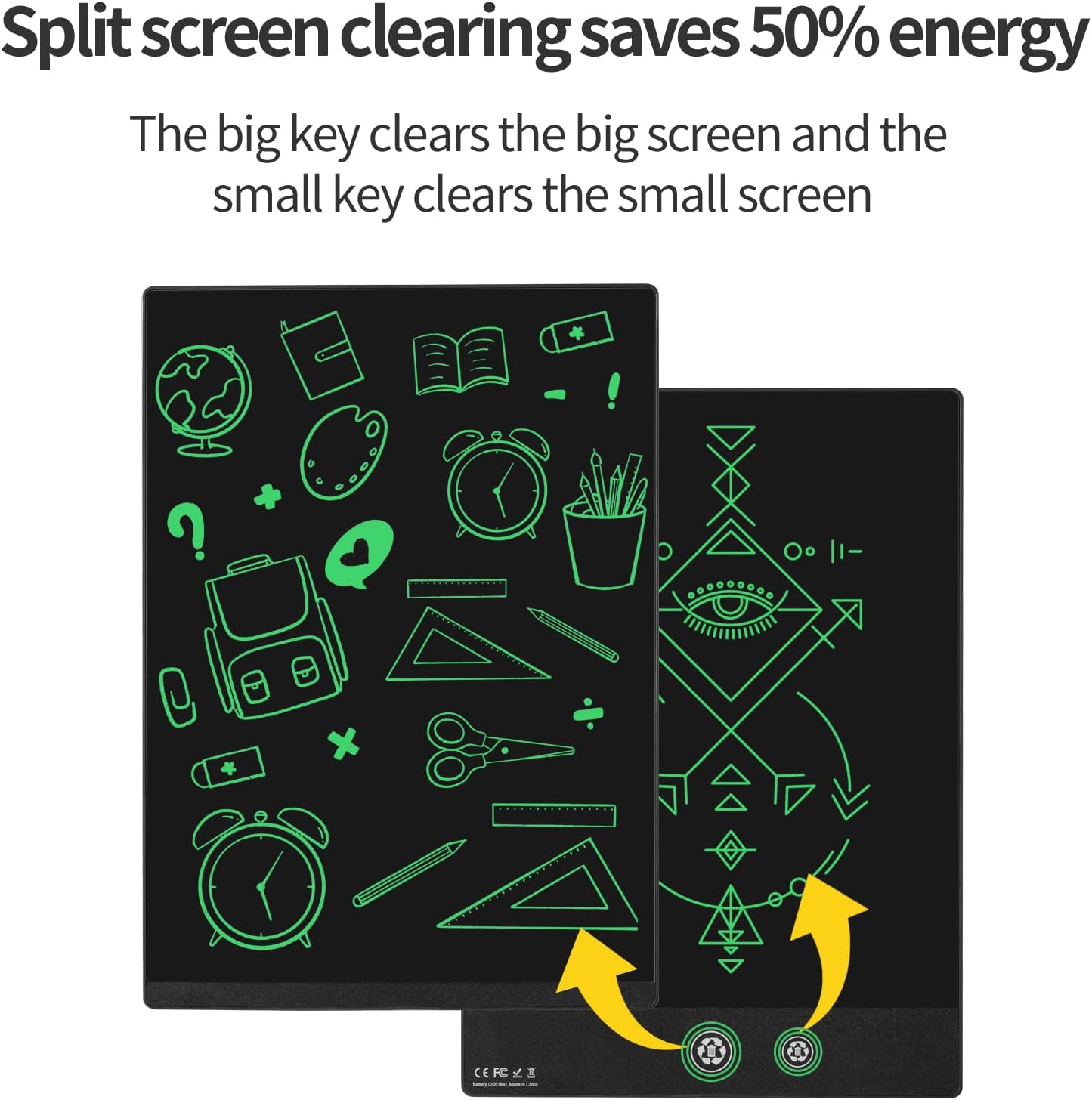 LCD Writing Tablet, 11.5in Double Display Erasable Reusable Electronic Drawing Pads, Electronic scratchpad for Kids and Adults Black