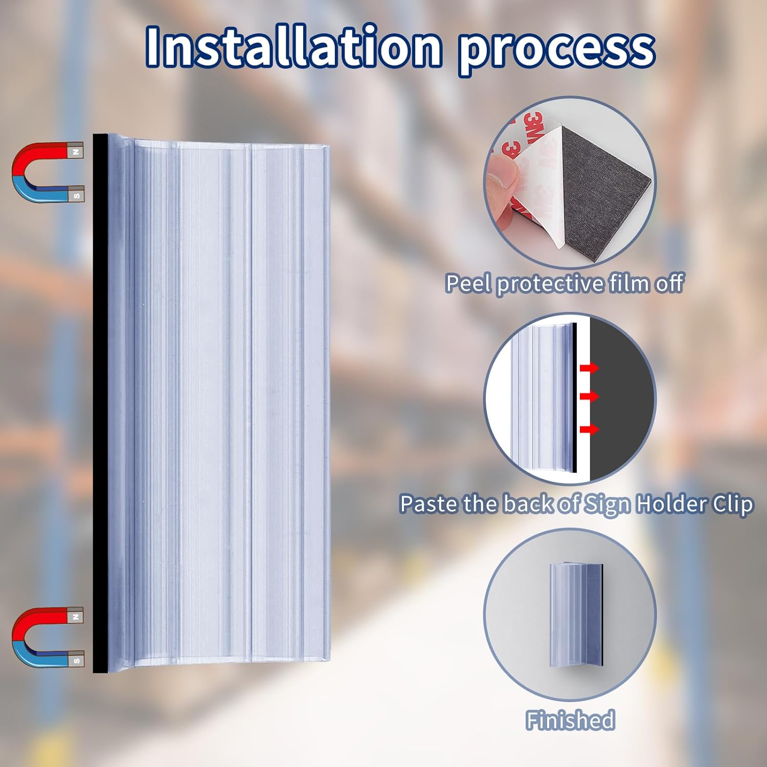 - TOOTH-LIKE GRIPPER:Tooth-like gripper designed, the Magnetic Sign Holder holds signage firmly in place.It with soft interior fins for a secure grip . Its gripper durable and flexible, designed to hold and display a variety of signs of different shapes and sizes.3M Magnetic Sheets with Adhesive Backing magnetic adsorption is very strong, so that it sticks tightly to the place that can be attracted by the magnet and will not easily fall to the floor.