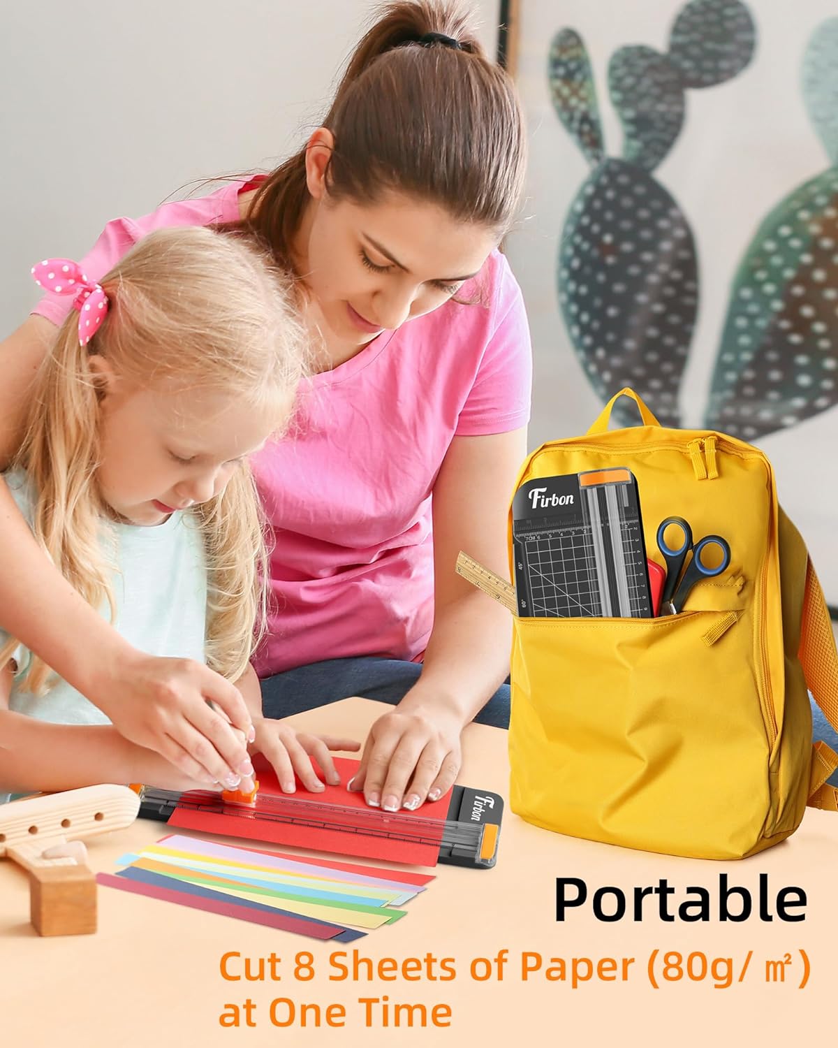 Firbon Black A5 Paper Cutter, Straight Small Paper Trimmer with Side Ruler for Scrapbooking Craft, Paper, Coupon, Label, Cardstock