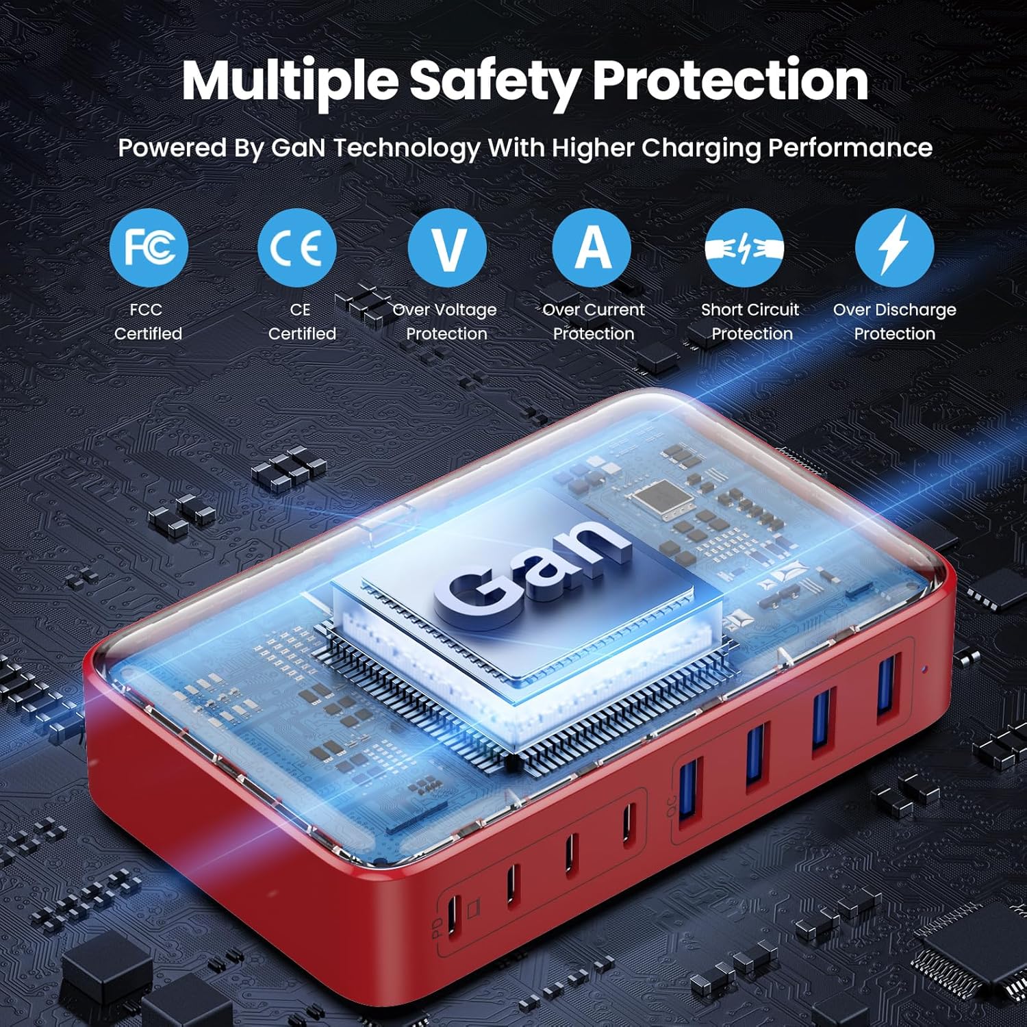 - 【Latest GAN III Chip Technology Charger Station】The USB C charger adapted GaN III generation chip technology, built-in multi-protection system and premium microchips. With higher energy efficiency, higher resistance to radiation and upgraded heat dissipation, Gallium Nitride (GaN) makes our chargers smaller and safer without sacrificing a drop of power. Trustworthy Charging Station with 3 Years Warranty!