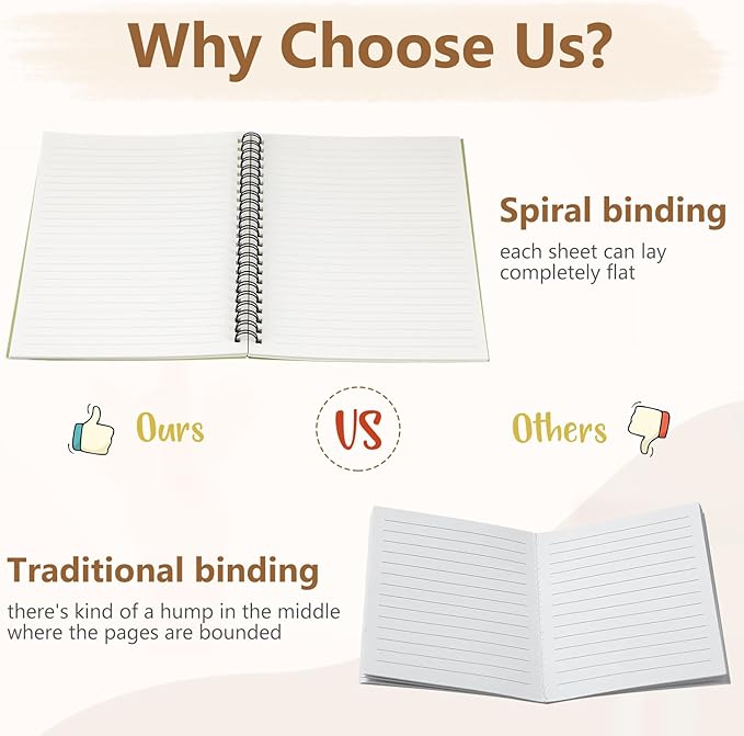 - Smooth to Write: each spiral journal notebook has 60 sheets (120 pages), and each page adopts quality 80gsm white paper, smooth and easy to write, preventing ink infiltrating into the next page, and mild colors can avoid eye fatigue and bring comfortable experience