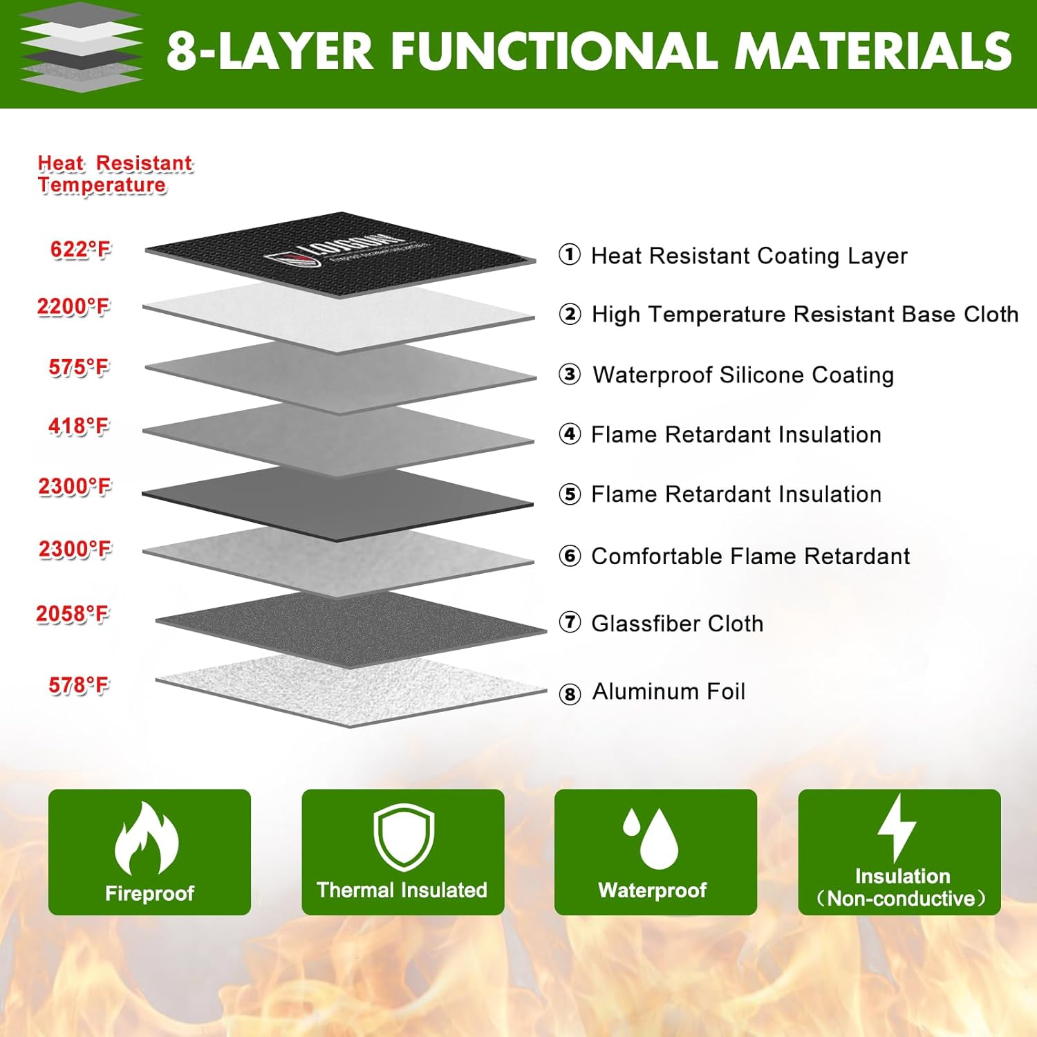 - Material : Non-itchy silicone coated fiberglass+Heat-insulating fiberglass+Fiberglass-Reinforced Aluminum Foil