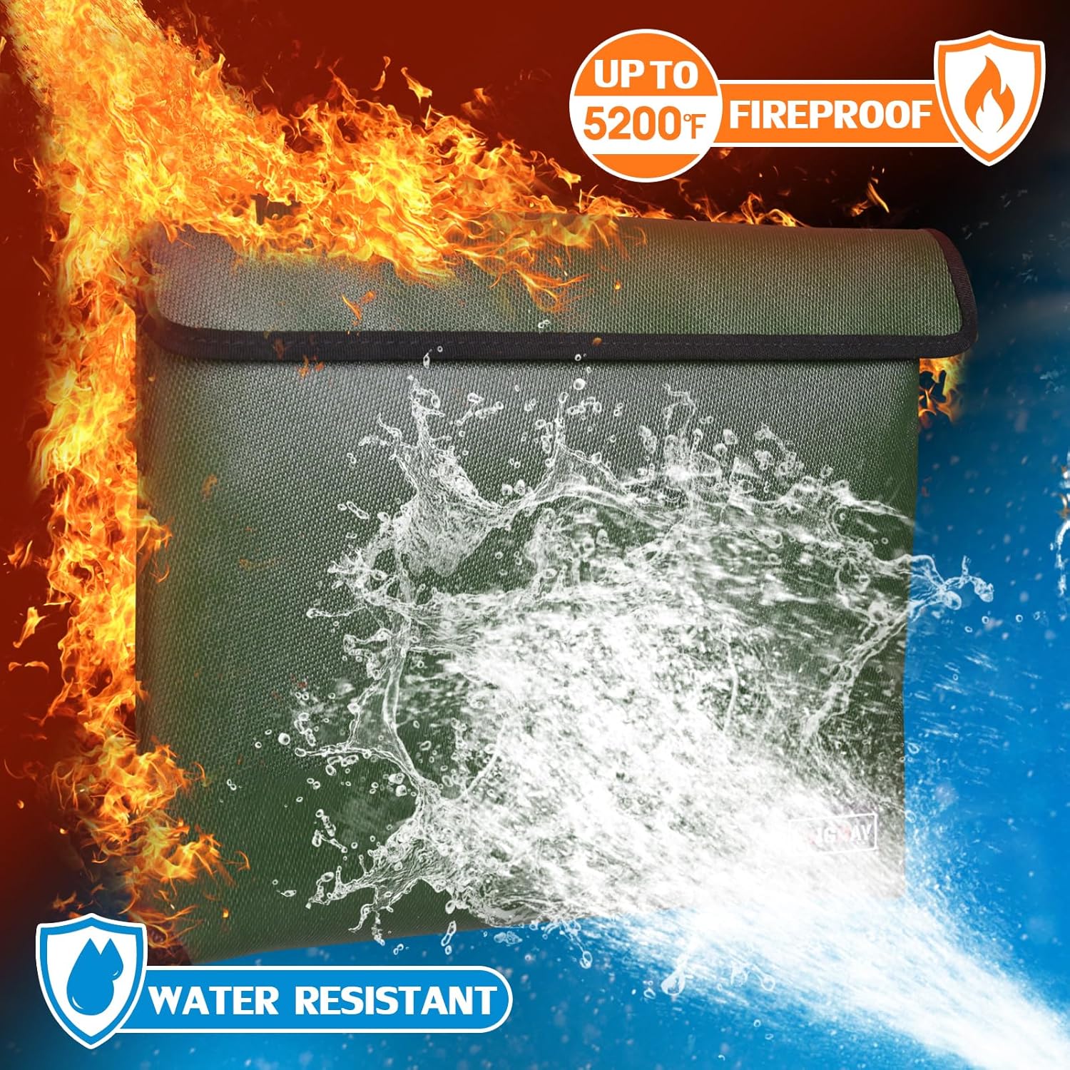 - 🔥TRUSTED FIRE PROTECTION : The fireproof waterproof document bag has passed Global Flammability Standards (US labs) and Vertical Combustion Testing (SGS UL94 V-1). Fireproof money bag can withstand ultra high temperatures up to 5200°F