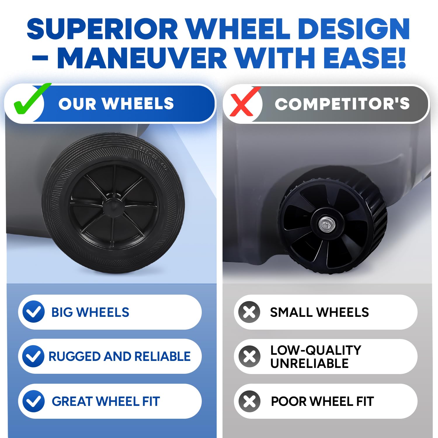 - Convenient Rolling Design: Equipped with sturdy wheels, this large garbage can with lid is easy to maneuver and transport, making waste collection a breeze, even when full.