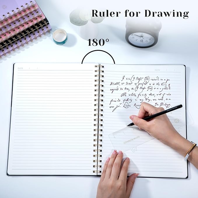 - Upgrade Practical Functions -- We added a pen insert on the cover of the notebook journal to prevent pens from falling out. Removable ruler can help you measure and chart. Elastic band keep the cover from opening, saving space when you put it in your bag. Internal pockets store small cards and important note-taking notes.
