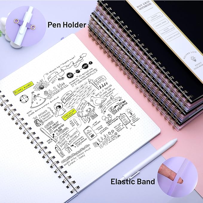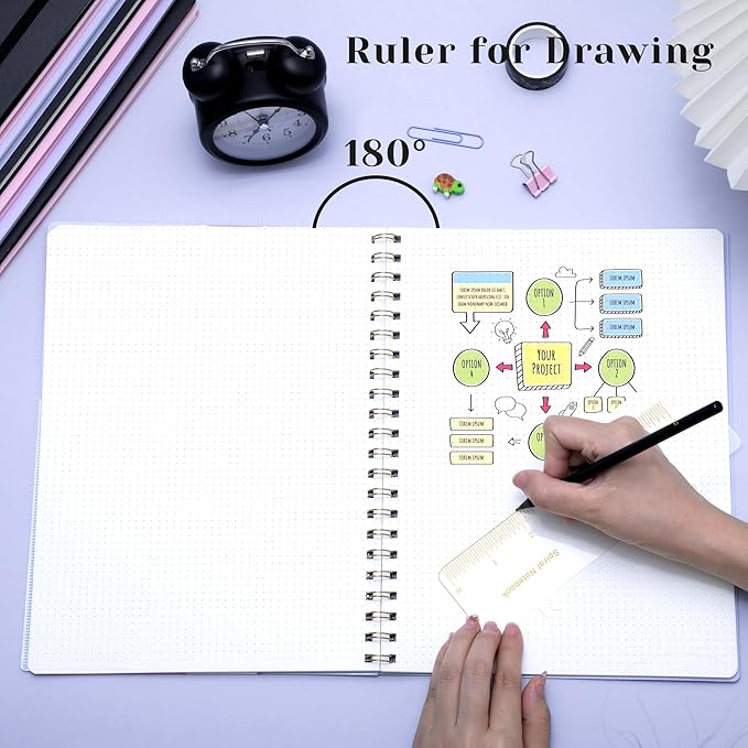 - Upgrade Practical Functions -- We added a pen insert on the cover of the dot journal to prevent pens from falling out. Removable ruler can help you measure and chart. Elastic band keep the cover from opening, saving space when you put it in your bag. Internal pockets store small cards and important note-taking notes.