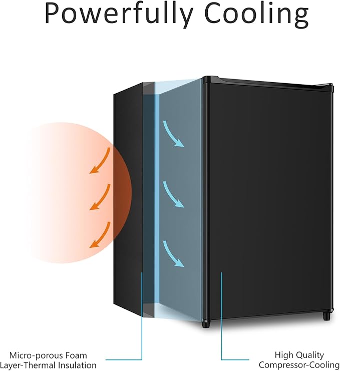- ENERGY SAVING & LOW NOISE: The mini fridge energy cost is estimated to be as low as 0.5 kWh per day; It uses an R600a compressor, making it energy saving and environmental friendly; The noise level during operation is less than 37 dB, which makes it suitable for a variety of places such as offices, dormitories, apartments, kitchens, etc