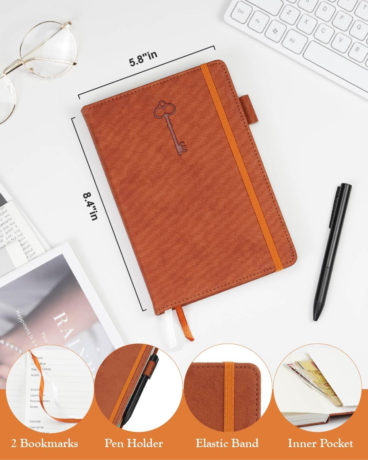 - Compact & unique design -Our password logbook showcases a discreet design without any visible labels or titles, safeguarding your sensitive data. The key pattern adorning the cover adds an element of mystery while subtly alluding to its contents. Despite its inconspicuous appearance, we recommend keeping it in a safe place to protect your information from unauthorized access.