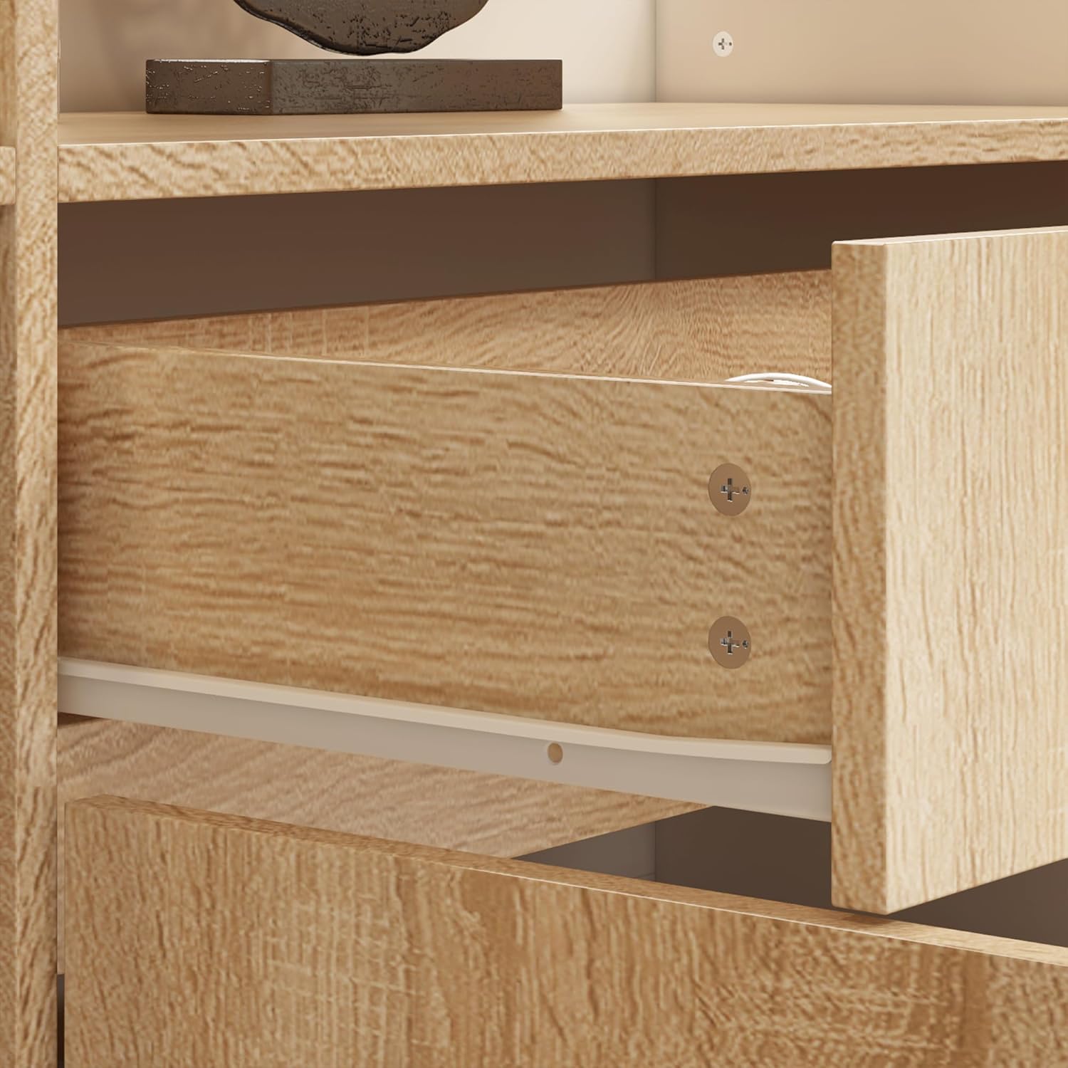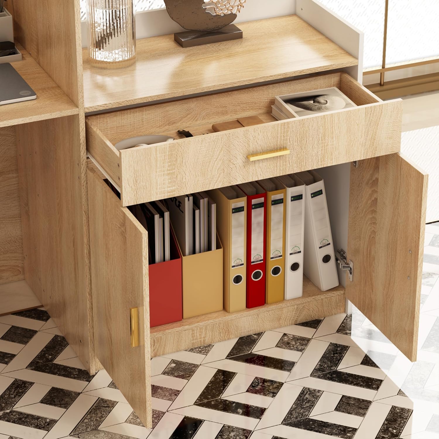 ECACAD Oak & White Reception Desk with Keyboard Tray, Retail Counter with Cabinet, Checkout Counter Table for Office Clinic Retail Lobby Salon