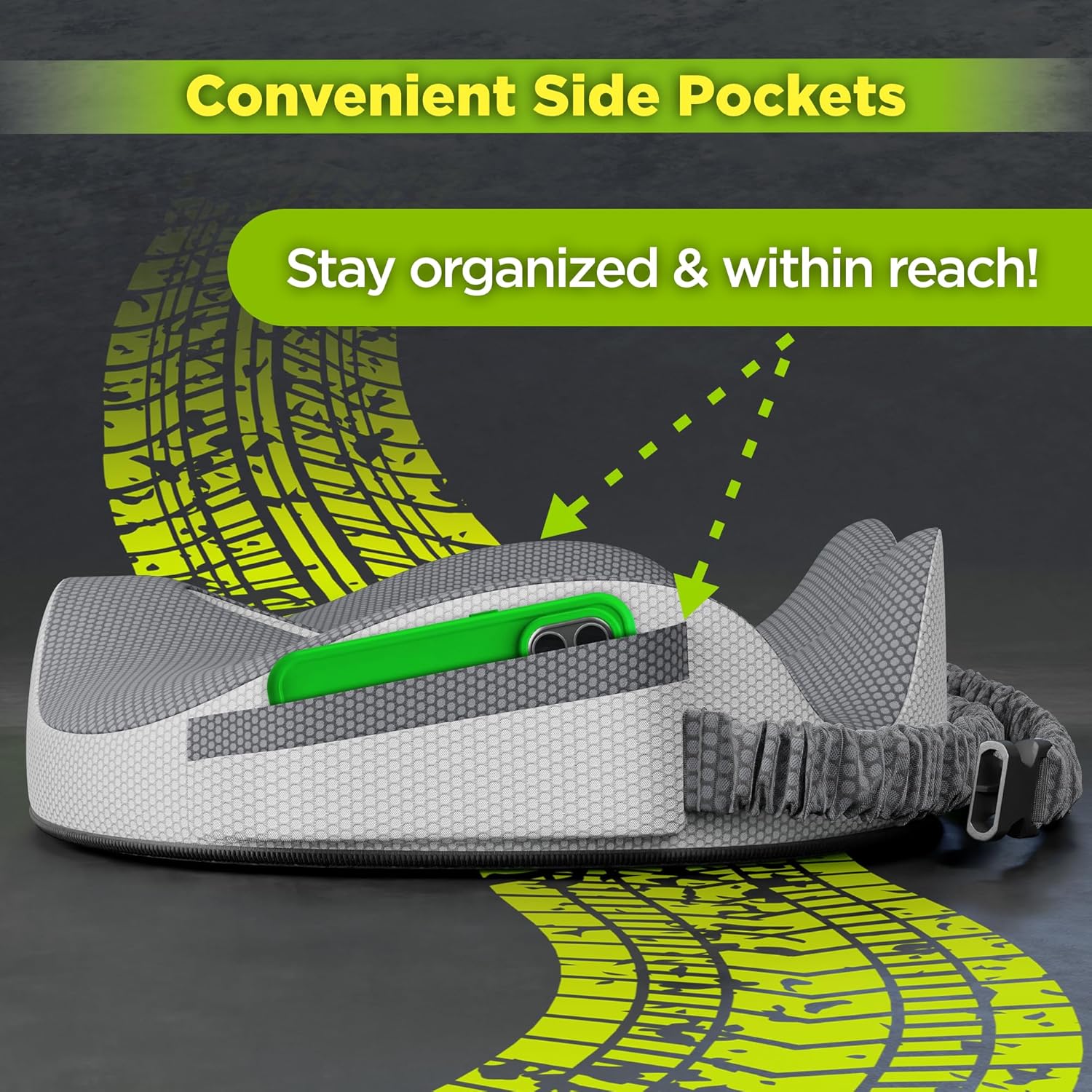 - 🧵【𝐓𝐨𝐮𝐠𝐡 𝐄𝐧𝐨𝐮𝐠𝐡 𝐟𝐨𝐫 𝐋𝐨𝐧𝐠 𝐒𝐭𝐫𝐞𝐭𝐜𝐡𝐞𝐬】- Truck driver seat cushion includes 2 removable & washable covers, non-skid base, and adjustable straps for a secure fit. Crafted to withstand wear & tear of long hauls.