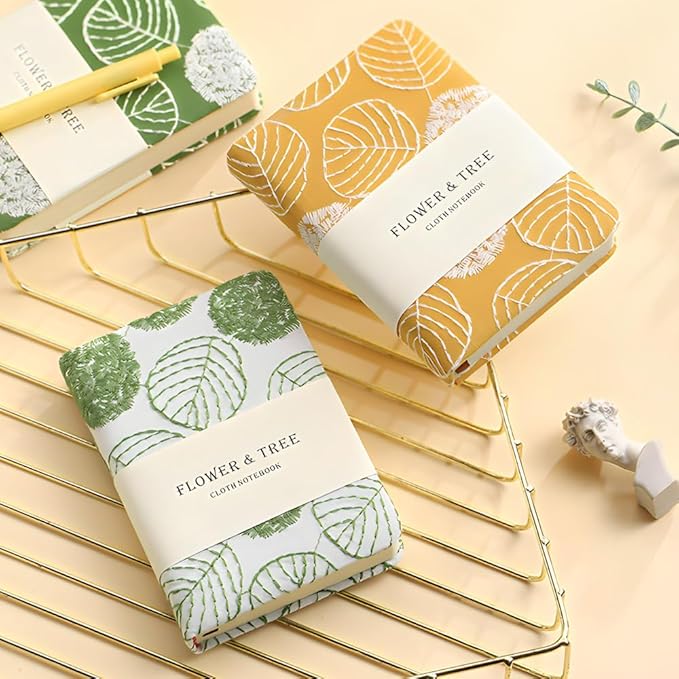 Pocket Notebook, A6 Journal, Small Embroidered Journal, Cute Fabric Notebook, Lay Flat Hardcover Journal, 4x6 Lined Notebook & Sketchbook, Personal Writing Journal for Women, White Leaf