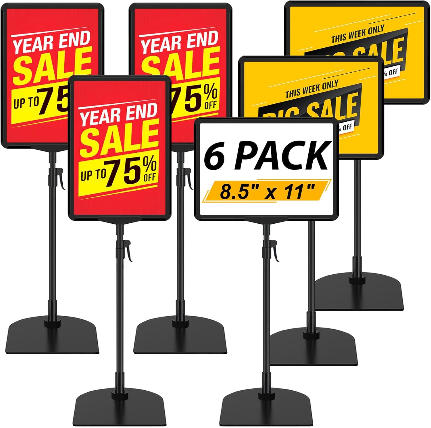Table Top Sign Holder - Adjustable Floor Standing Sign Holders 8.5 x 11 Tabletop Poster Stand for Display Vertical Horizontal View, Black Signage Display Stands with Iron Base, 6 Pack
