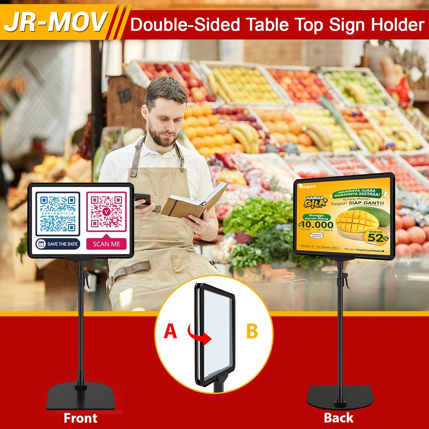 - Versatile Sign Stand for Table: Eye-catching poster stands for display are ideal for versatile placement; placing multiple sign stands in different locations amplifies your message visibility; suitable for supermarket, shop, stall, restaurant, exhibition
