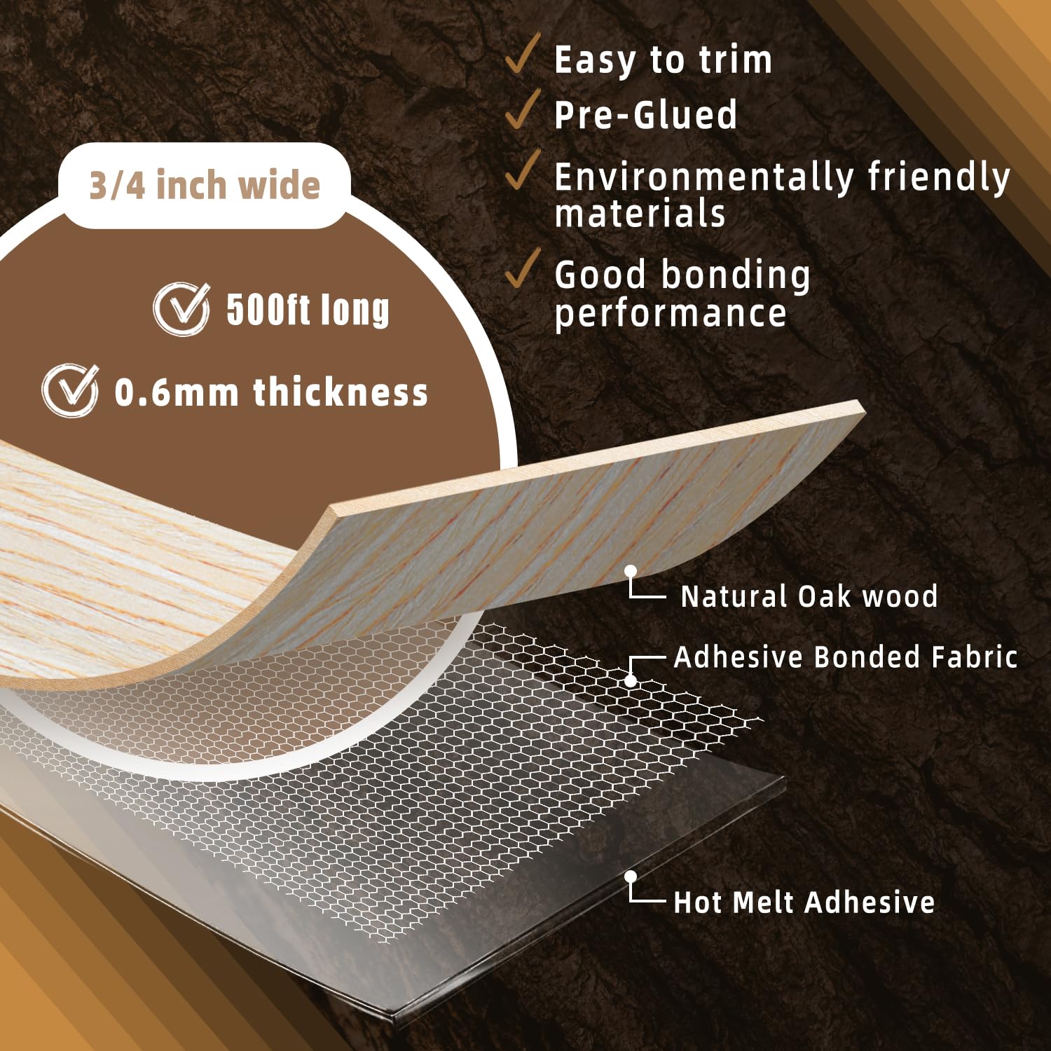 - √【HIGH QUALITY】- The edge banding is made of high quality real wood material, which is durable and elastic, with a smooth surface and not easy to be dirty.When you repair Laminate and Cabinets, Oak Edge banding will be your first choice.
