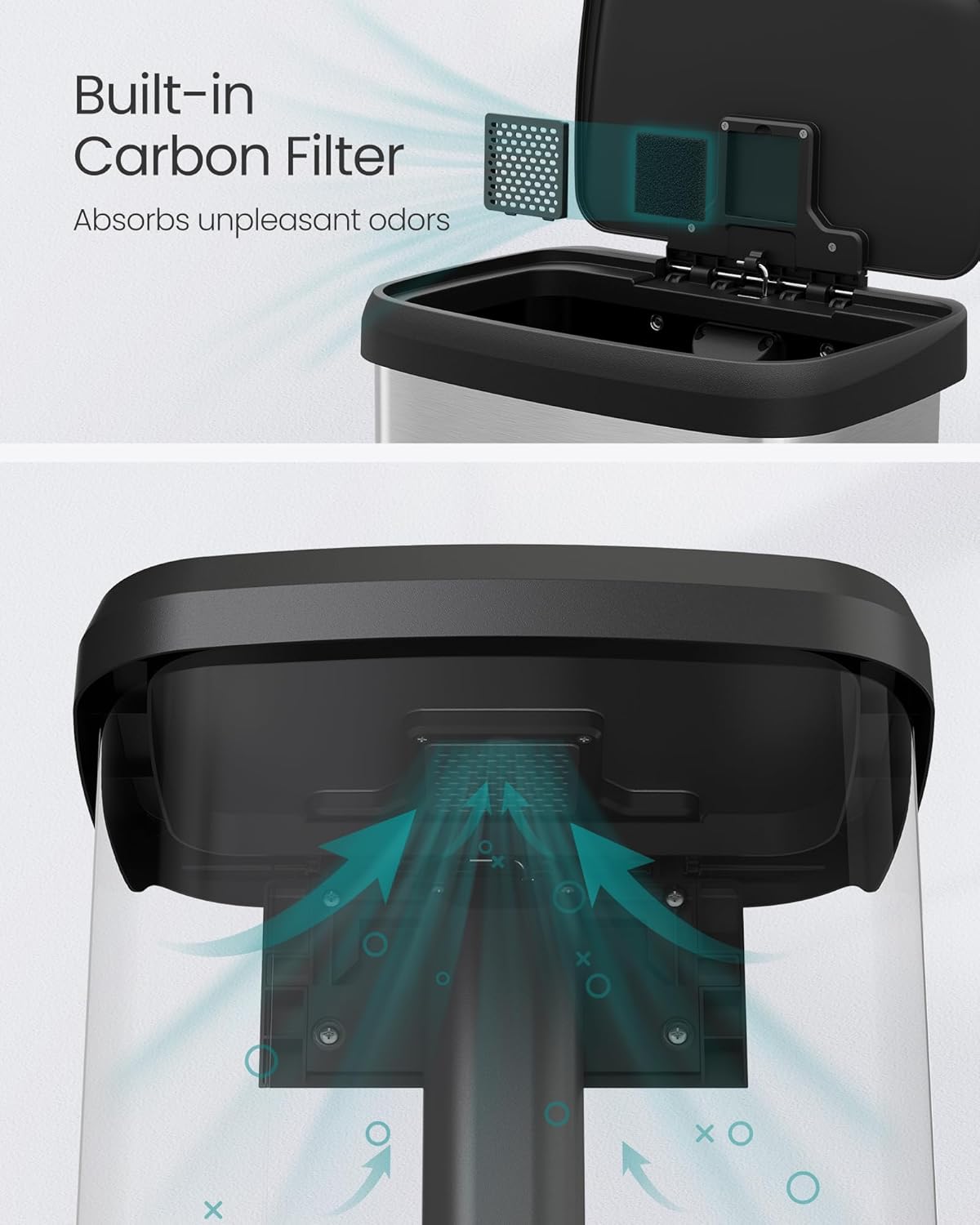 - [Thoughtful Detailing] The carbon filter in the lid helps absorb unpleasant odors, keeping your kitchen smelling fresh