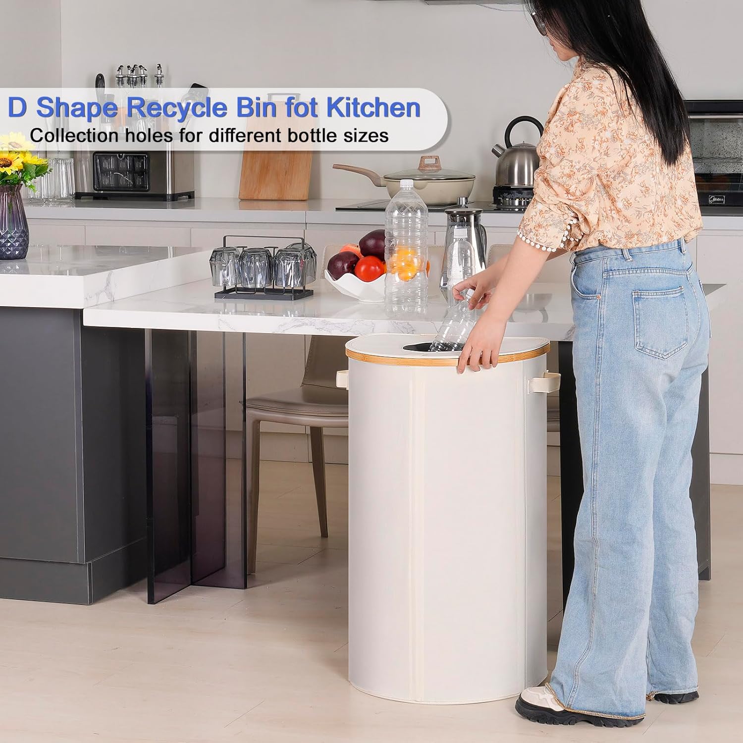 Efluky Recycling Bin 100L, 26 Gallon, Beige, D-Shaped, Oxford Fabric, 17.32"L x 12.9"W x 11.46"H, 2 Removable Inner Bags, Lightweight, Open-Top, Cycling, Kitchen