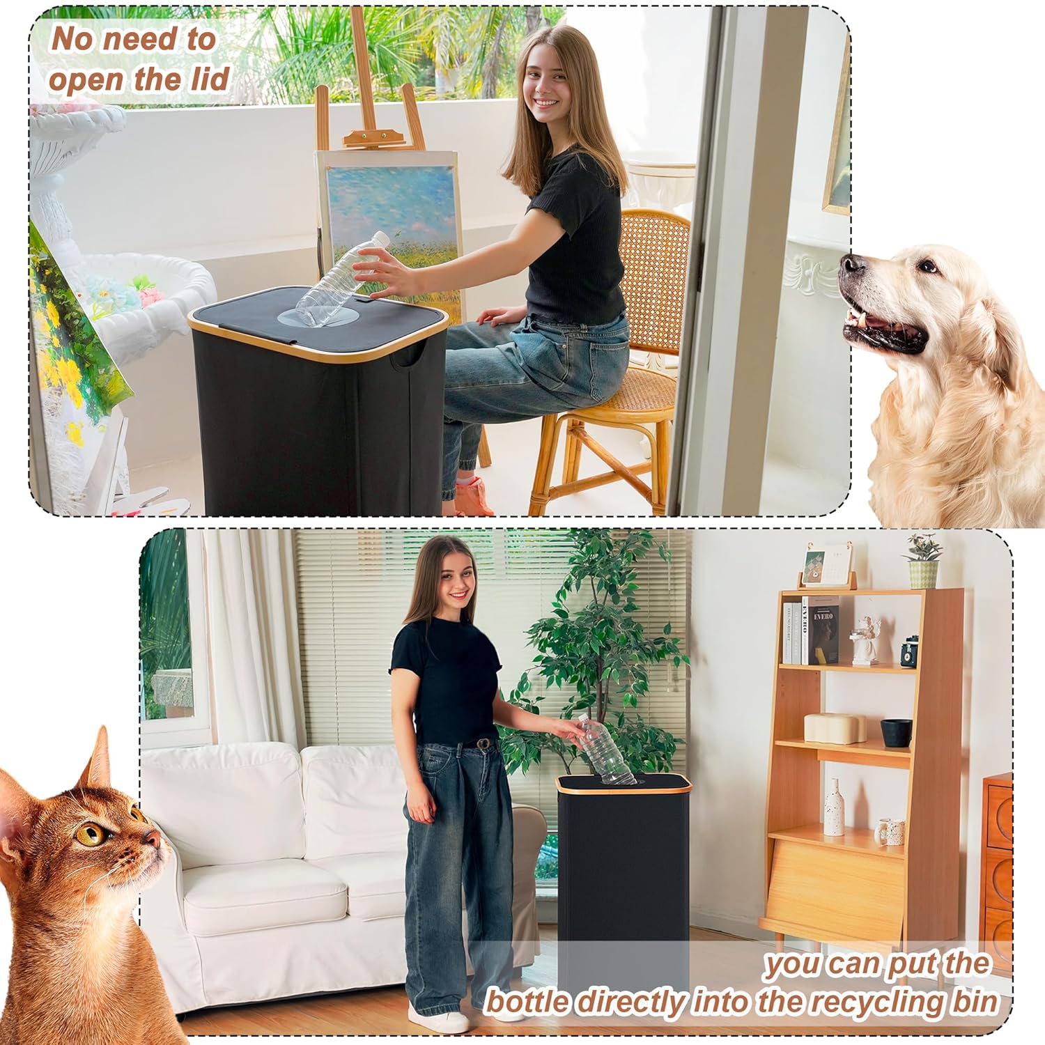 - 【Comfortable Grip Bamboo Handle】The smooth bamboo handle provides a comfortable grip without causing discomfort to your hands. The lid helps suppress odors and keeps the environment clean. This kitchen trash can offers ample storage space for efficiently organizing bottles, keeping your home or dorm room tidy and orderly.
