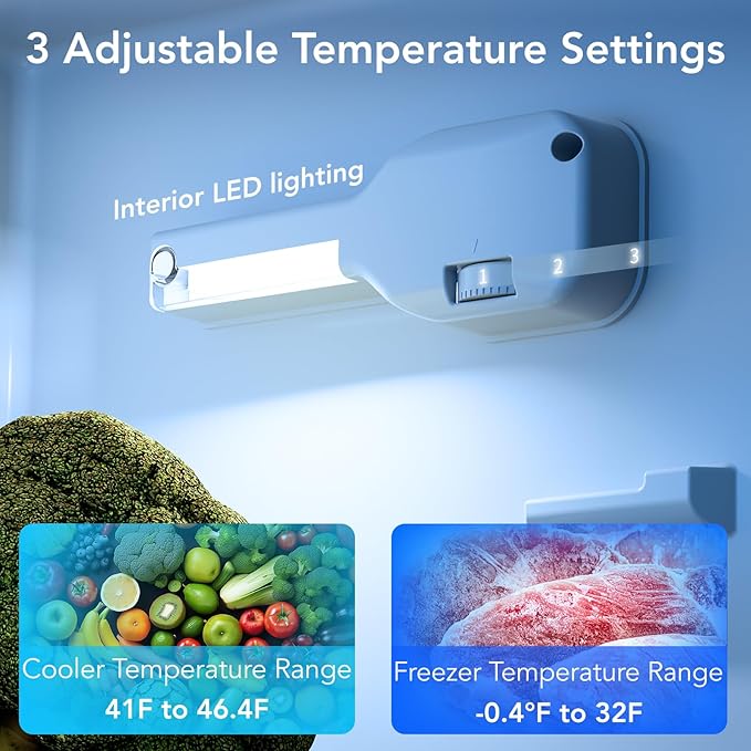 - The small refrigerator with thermostatic knob can be adjusted to 32°F to 50°F in the refrigerator compartment / 3°F to -1°F in the freezer compartment. Turn the thermostatic knob, meet the different temperature requirements of different foods.
