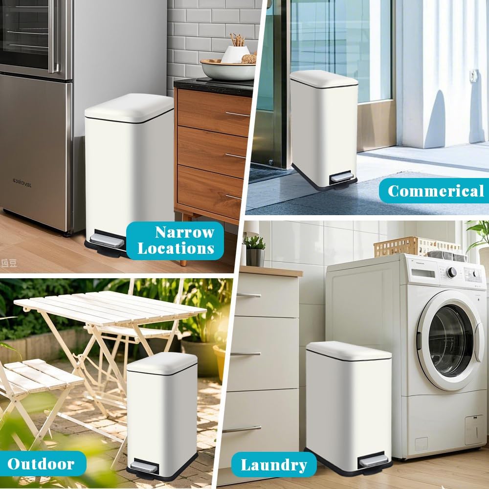 - Removable Inner Bucket for Easy Cleaning: This 8 gallon white trash can included inner bucket makes disposal and cleaning hassle-free, allowing you to easily empty and wash the step trash can without lifting the entire trash can.