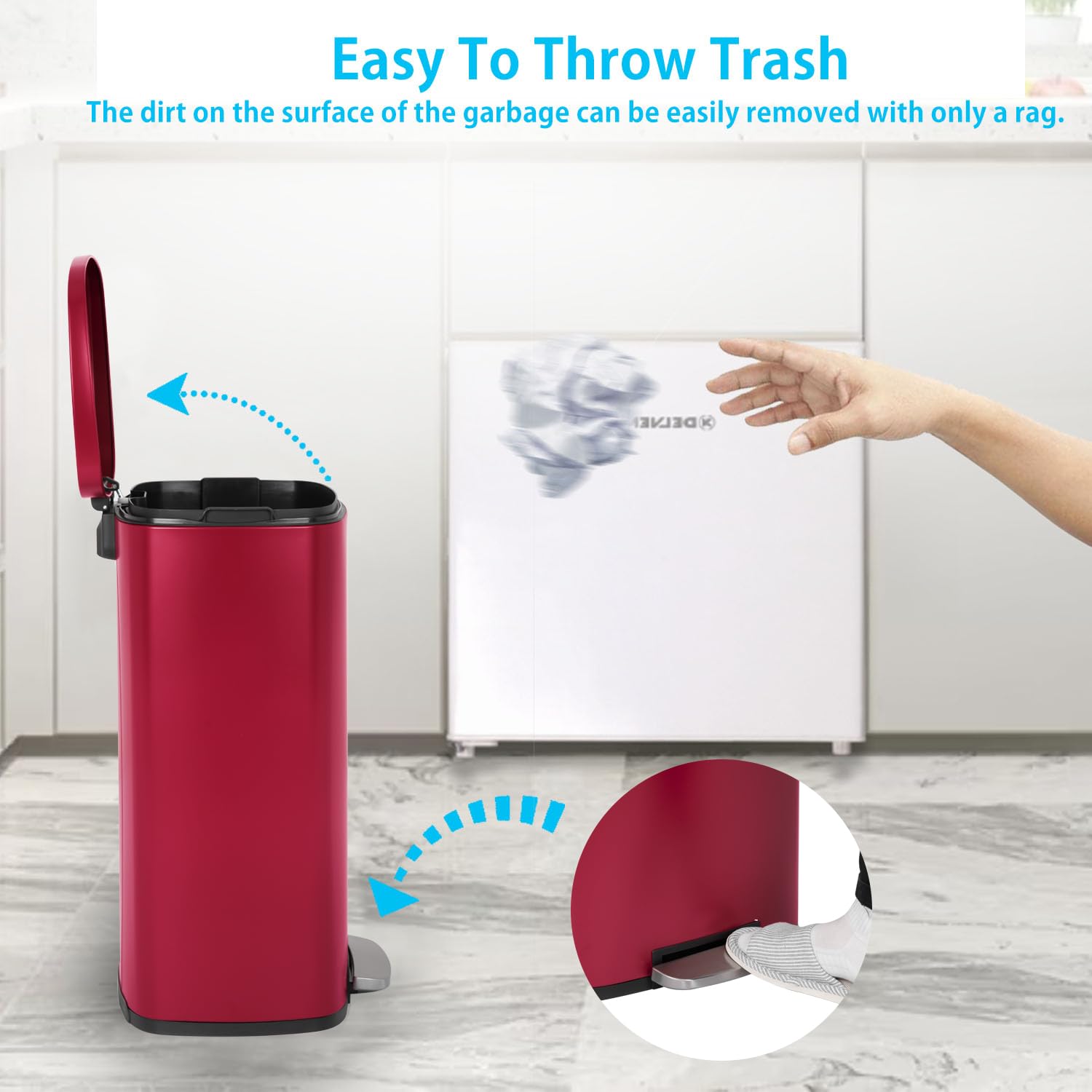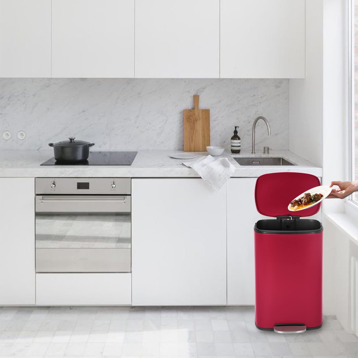 PayLessHere Stainless Steel Trash Can with Lid - Removable Inner Bucket, Foot Pedal, Soft Close for Office, Home, Kitchen (Red, 13 G)