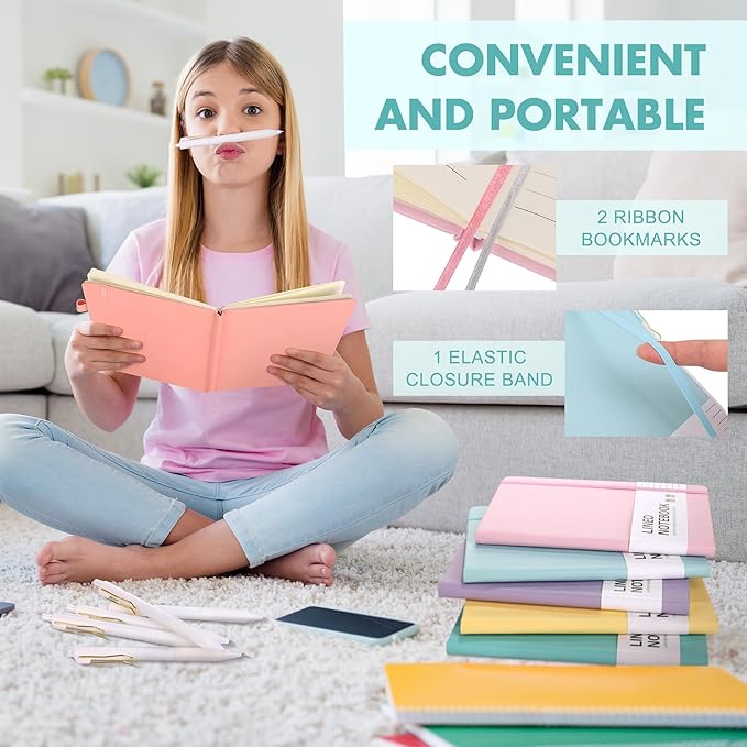 - Convenient size: the A5 notebook measures 5.7 x 8.3 inches, with each college ruled hardcover notebook containing 64 sheets/128 pages and 8 mm line spacing, making the lined journal notebook suitable for fitting in pockets and bags